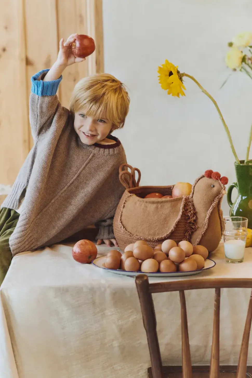 Der Chicken Toffee Korb von verbindet verspieltes Design mit praktischer Funktionalität. Handgefertigt aus nachhaltigem Baumwollmaterial, bringt dieser Korb ein charmantes Landhausgefühl in jeden Raum. Mit seiner zarten Toffee-Farbe und dem einzigartigen Hühner-Motiv ist er sowohl ein dekoratives Statement als auch eine vielseitige Aufbewahrungslösung, bei der jedes Detail sorgfältig ausgearbeitet wurde.