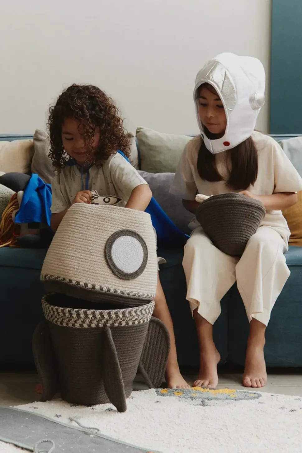 STORAGE BASKET GIANT ROCKET von ist das perfekte Aufbewahrungsstück für kleine Astronauten mit großen Träumen! Dieser geräumige Korb ist aus weicher, verantwortlicher Baumwolle handgefertigt und als verspielte Rakete gestaltet, die die Fantasie auf eine Reise zu den Sternen mitnimmt. Mit seinem stilvollen, minimalistischen Look ist er sowohl witzig als auch praktisch – er macht es einfach, alles zu organisieren, von Spielzeug bis hin zu Decken und Teddybären, und verleiht jedem Raum einen Hauch von Abenteuer.