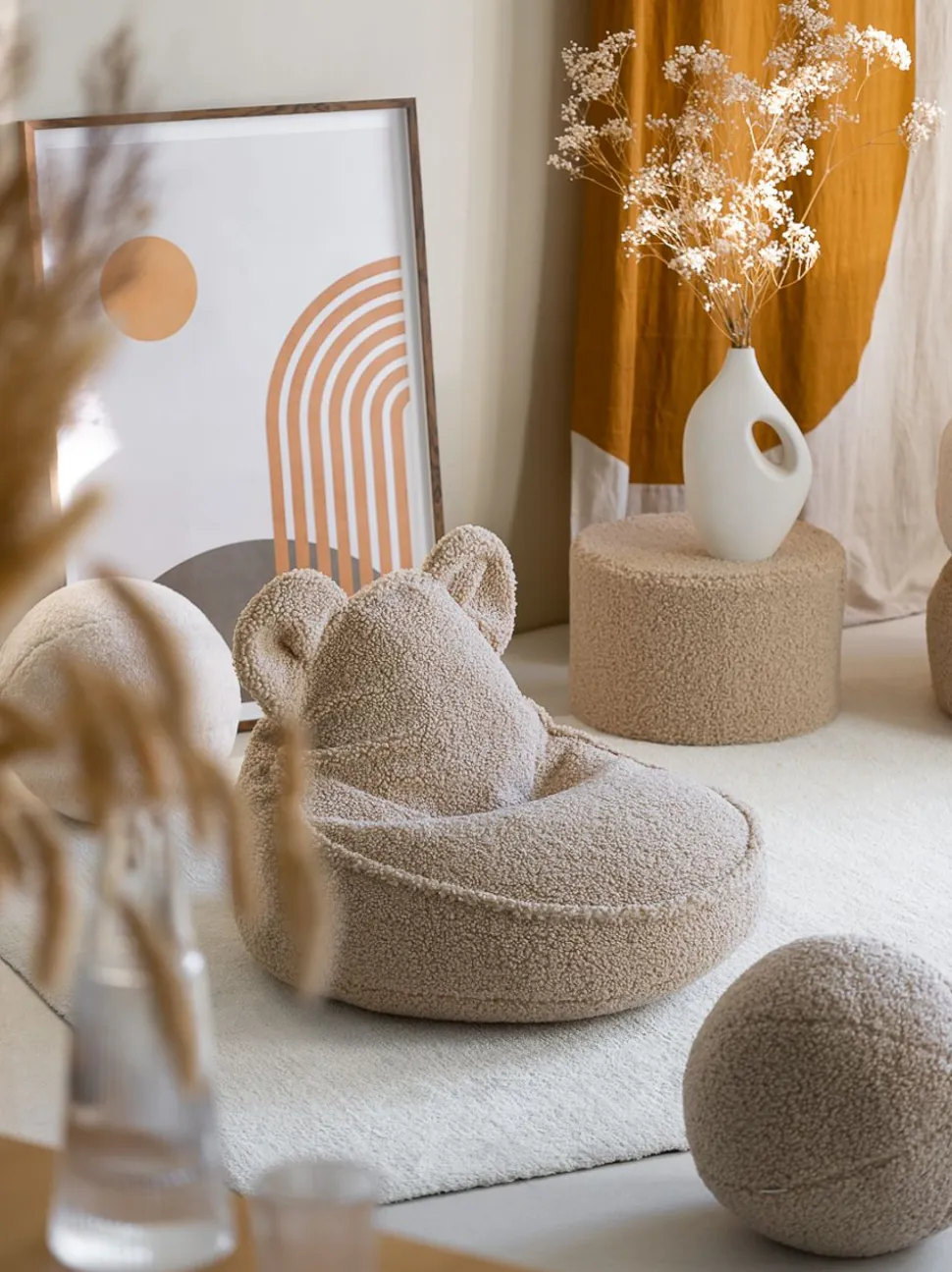 Der Bear Beanbag von ist die ideale Sitzgelegenheit für das Kinderzimmer. Der Sitzsack wurde mit dem Fokus auf Komfort und spielerischen Details entworfen und ist die perfekte Wahl für Entspannung und Spaß. Er ist aus weichen, hochwertigen Materialien gefertigt, die zu gemütlichen Stunden einladen. Die niedlichen Bärenohren verleihen ihm ein charmantes und einladendes Element, das Kinder lieben werden. Mit seinem schlichten, aber funktionalen Design passt er in jedes Kinderzimmer und schafft eine gemütliche Atmosphäre.