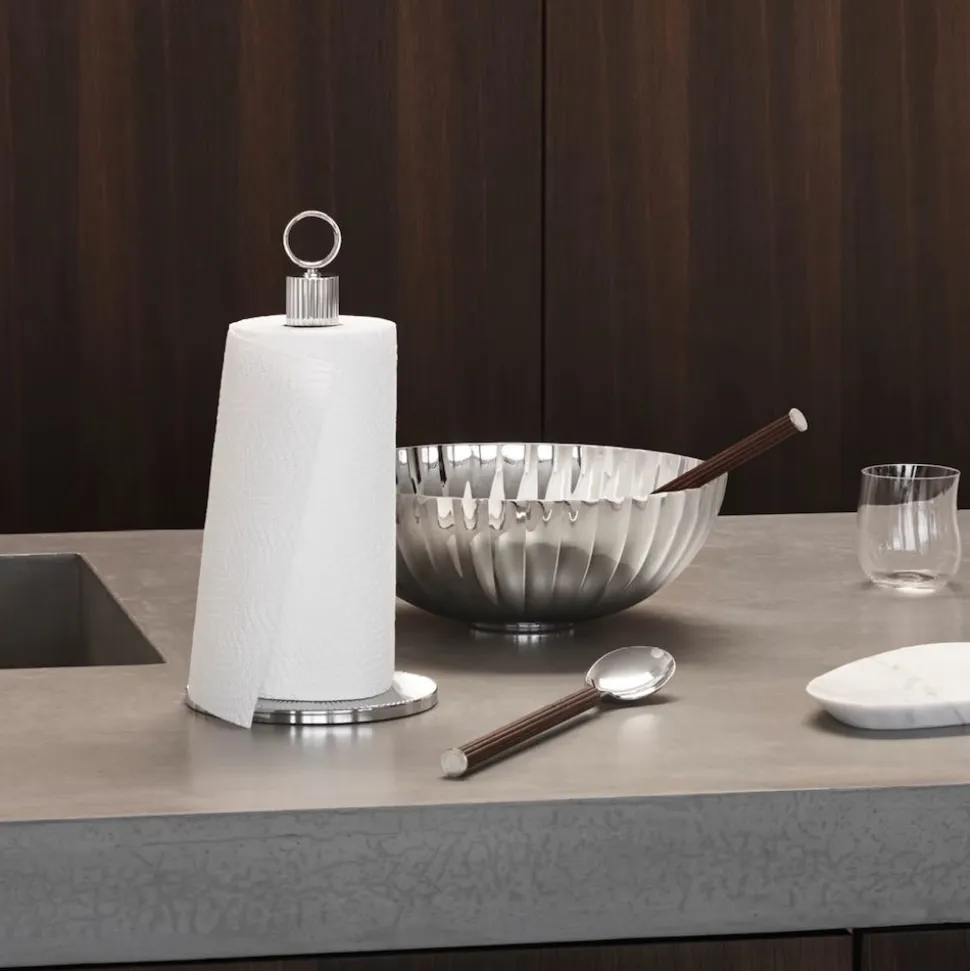 Der Bernadotte Papierhandtuchhalter von , der von Sigvard Bernadotte entworfen wurde, ist ein Musterbeispiel für praktischen Chic in der Welt der eleganten Küche. Mit seiner exquisiten Mischung aus zeitlosem Design und Funktionalität ist er eine Hommage an das Erbe der eleganten Silberwaren des frühen 20. Jahrhunderts. Die glänzende Edelstahlkonstruktion mit ihren weichen Kurven und der polierten Oberfläche verbindet Langlebigkeit mit einer prächtigen Ästhetik. Er ist nicht nur ein Halter, sondern auch ein Zeugnis der berühmten Designphilosophie von Bernadotte, die aus einem alltäglichen Küchenutensil ein Statement von unaufdringlichem Luxus macht, das sich perfekt in eine Vielzahl von Interieurs einfügt, von modernem Minimalismus bis hin zu traditioneller Opulenz.