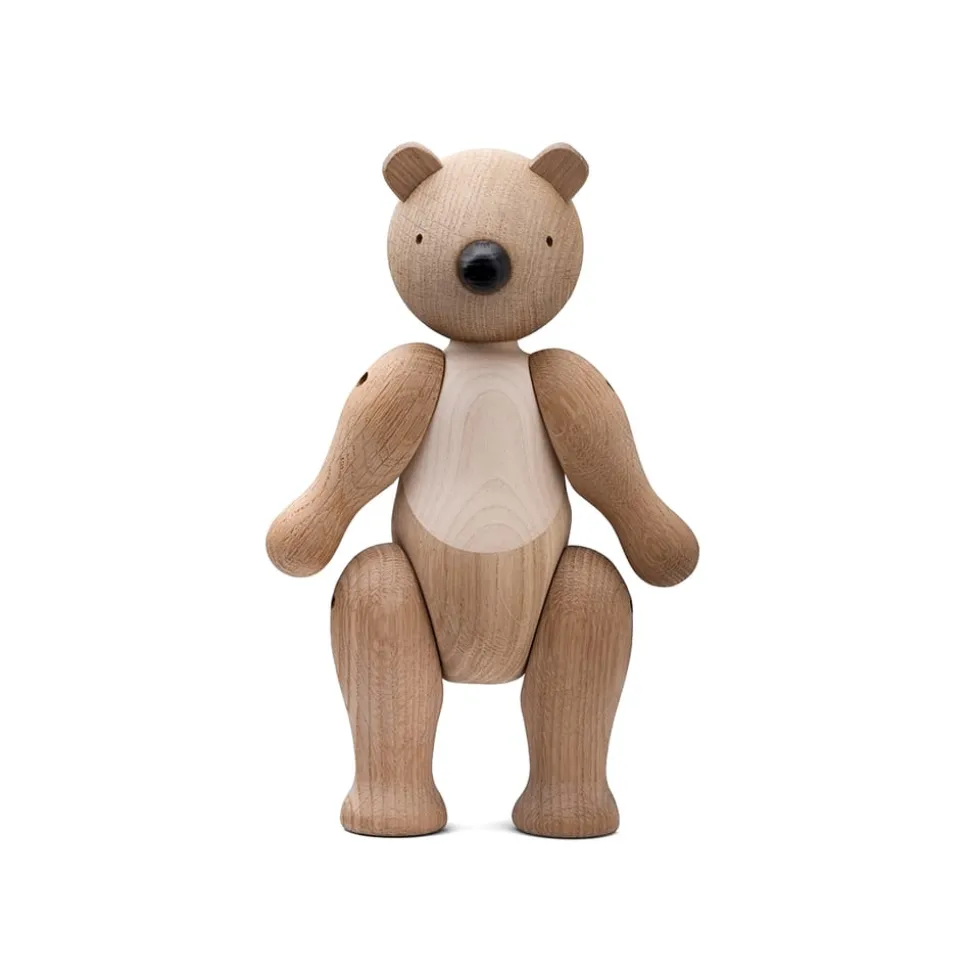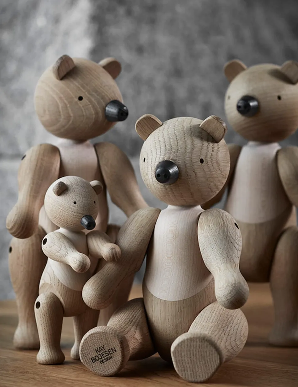 Kay Bojesen freundlicher Bär mit den offenen Armen kam 1952 in die Welt. Die Palette der fantasievollen Holzfiguren ist lang und hat einen ganz besonderen Reiz für Kinder und Erwachsene. Für Taufen, Geburtstag, Studentengeschenk, Jubiläum oder Hochzeit. Ein Klassiker und ein lieber Freund, der sich durchs Leben bewegt – vom Kinderzimmer bis zur beliebten Design-Ikone im eigenen Besitz.