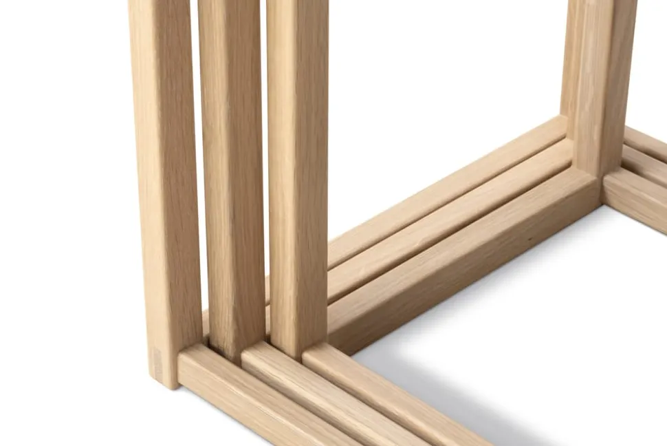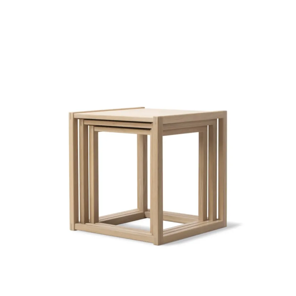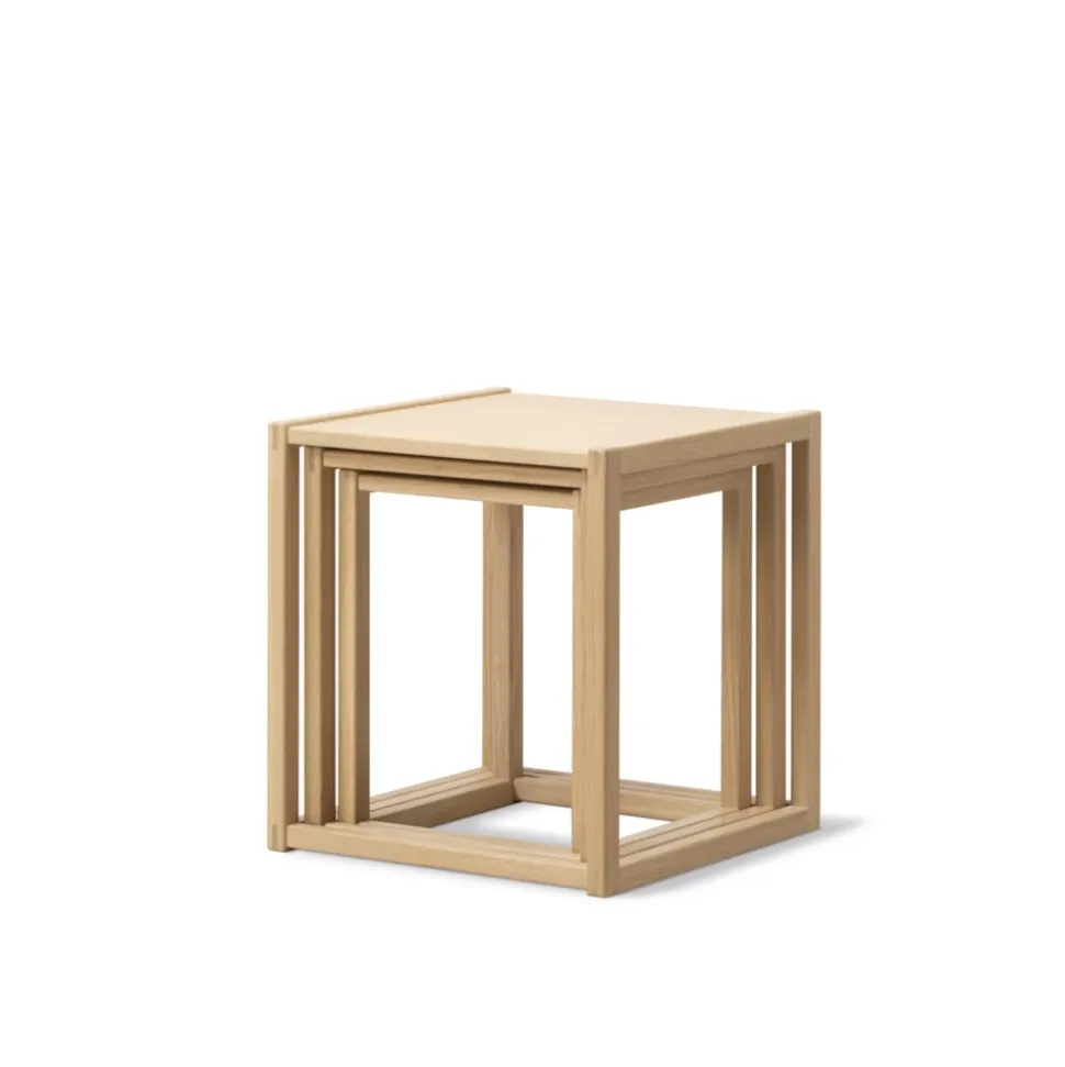 Børge Mogensen (1914-1972), einer der einflussreichsten Designer, die das moderne dänische Design geprägt haben, war der Gründer von Fredericia. Er ließ sich von der ganzen Welt inspirieren, um dauerhafte Alltagsgegenstände zu schaffen. Bekannt für seinen meisterhaften Umgang mit Materialien und Proportionen, werden Mogensens Entwürfe gefeiert und in führenden Designmuseen auf der ganzen Welt ausgestellt. Die BM375 Nesting Tables sind ein Zeugnis seines Erbes und vereinen Funktionalität, Schönheit und zeitlose Anziehungskraft in einem Design, das auch heute noch inspiriert.