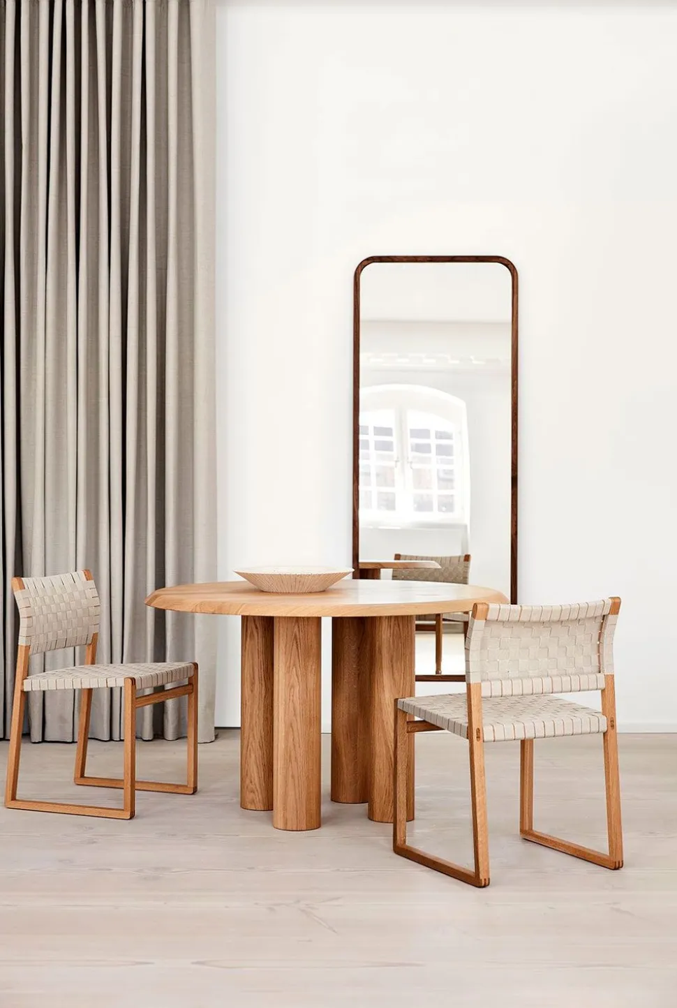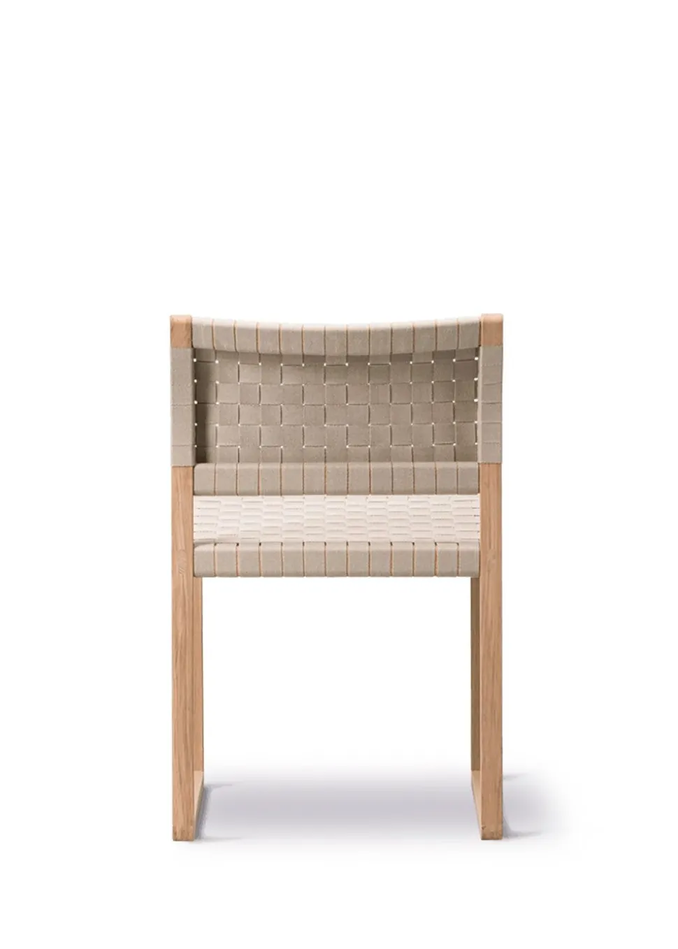 Der „BM61 Chair“ ist eines der Möbelstücke, die die Kollektion des legendären dänischen Designers Børge Mogensen charakterisieren, die den Grundstein für einen Großteil der heute florierenden nordischen Designarchitektur bildet. Die schlichte Konstruktion des Stuhls wurde mit Blick auf optimalen Komfort durch perfekte Proportionen gefertigt und ermöglicht sowohl ein formelles als auch ein entspanntes Sitzerlebnis durch die schwingende Rückenlehne. Die Basis ist eine minimalistische Konstruktion, die auf klaren Linien und wesentlichen Teilen basiert und keinen Platz für überflüssige Details oder Materialien lässt. Bei der Ausführung wurde jedoch auf die Auswahl der Materialien und deren Verarbeitung geachtet. Die Möbel von Fredericia sind aus geölter oder lackierter Eiche feinster Qualität gefertigt und mit sichtbaren Fugen versehen, die zeigen, dass sie über eine außergewöhnliche Schnitzkunst verfügen. Beim Modell 3361 wird dieses klassische nordische Design mit einer Sitzfläche und Rückenlehne aus Leinen umgesetzt, wie man es von den traditionellen Möbeln von Børge Mogensen kennt. Das elegante Geflecht verleiht den Möbeln einen starken Charakter und unterstreicht den hervorragenden Sitzkomfort.