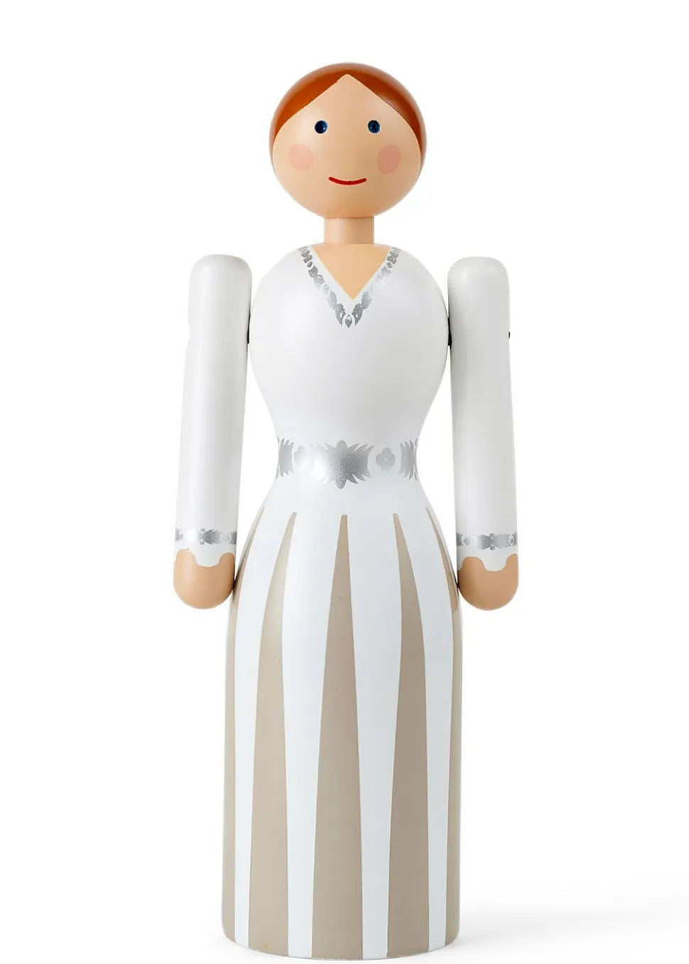 Die elegante und schöne Braut von Kay Bojesen ist eine schöne Figur für Ihr Zuhause. Die Figur hat die Form einer Braut und trägt ein wunderschönes und detailliertes Kleid, das ihr bis zu den Füßen reicht. Ihr Haar ist zu einem eleganten Dutt auf dem Kopf zusammengesteckt, und sie trägt einen lächelnden und glücklichen Ausdruck auf dem Gesicht. Die Figur ist mit einfachen und klaren Linien gestaltet, die ihr ein modernes und zeitloses Aussehen verleihen, das sich perfekt in jede Wohnungseinrichtung einfügen wird. Die weiße Farbe von Bride schafft ein Gefühl von Ruhe und Eleganz, das jedem Raum eine schöne und anspruchsvolle Note verleiht.