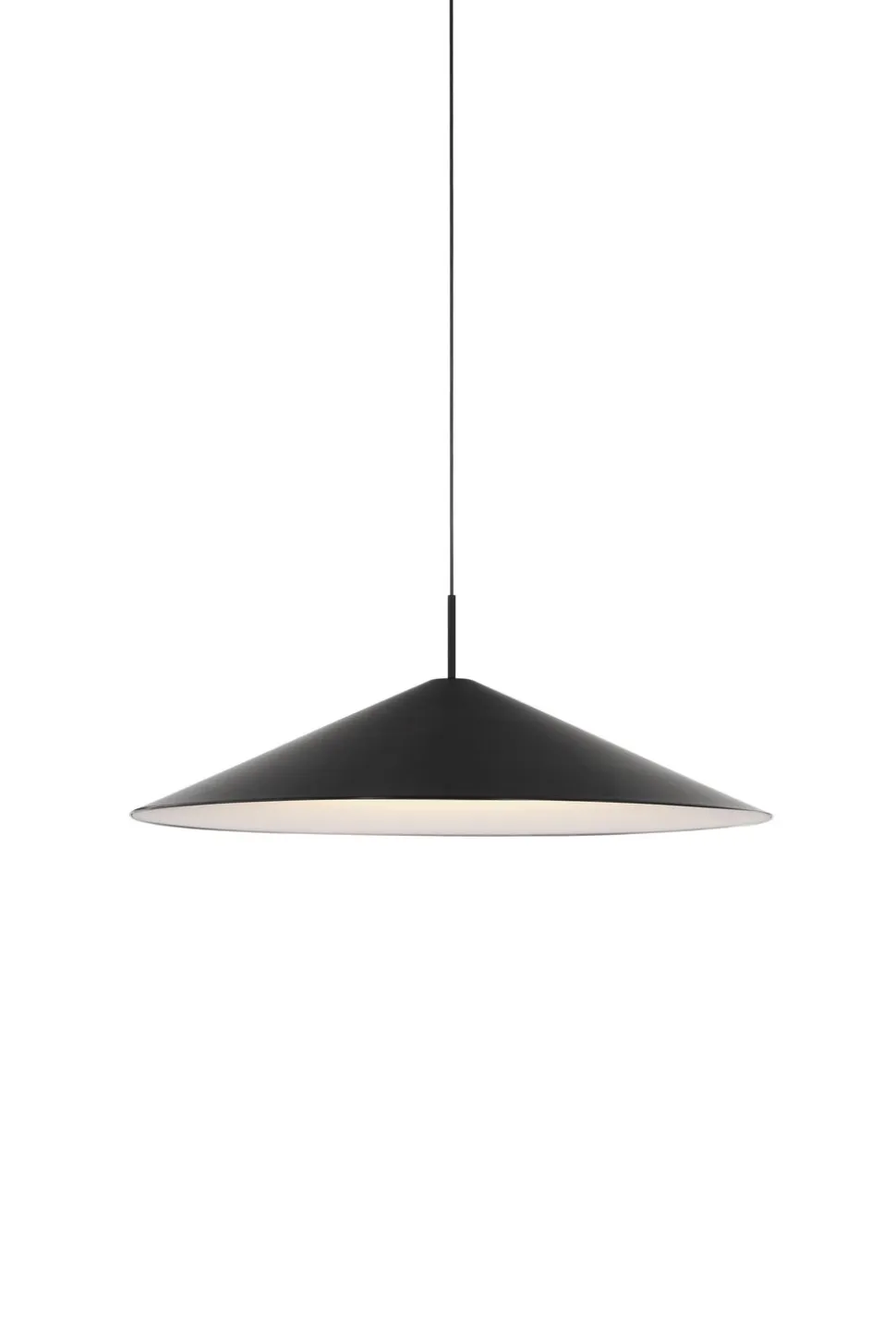 Die Pendelleuchte Brolly von , entworfen von Knut Bendik Humlevik, zelebriert die Kraft der Einfachheit durch ihre klare, architektonische Form. Der konische Schirm der Pendelleuchte, die in den Durchmessern 70 und 90 cm erhältlich ist, entfaltet sich zu scharfen Volumen, die ihre markante, moderne Silhouette unterstreichen. Mit ihrem konkaven Diffusor, der das Licht sanft verteilt, bietet Brolly einen warmen, großzügigen Lichtschein, ohne zu blenden, und ist damit die perfekte Ergänzung für Essbereiche oder jeden Raum, der eine angenehme, stimmungsvolle Beleuchtung benötigt.