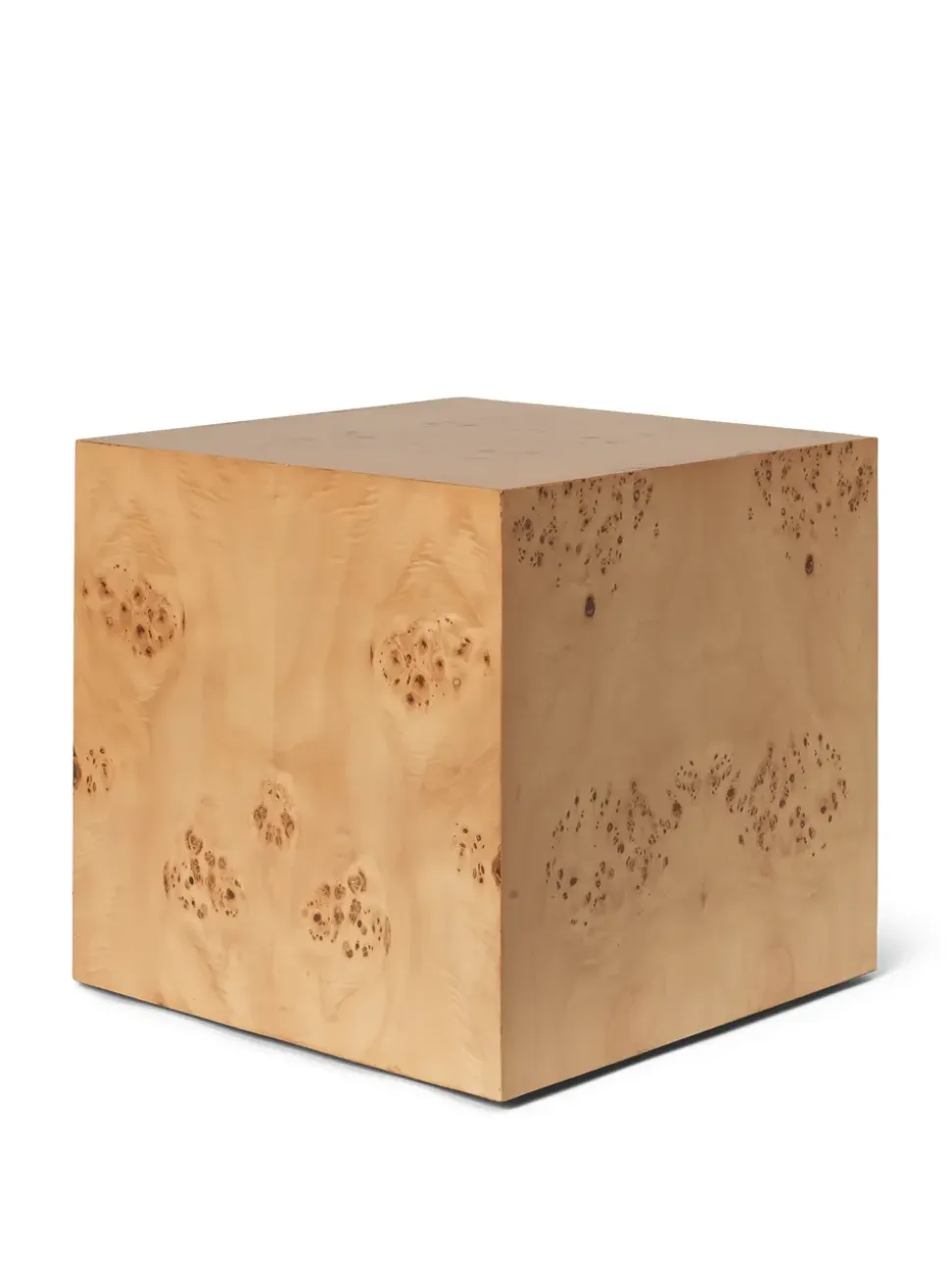 Der Burl Cube Beistelltisch von ist ein schönes und zeitloses Designmöbel, das natürliche Materialien mit moderner Ästhetik verbindet. Der Tisch ist aus hochwertigem Furnier gefertigt, wobei die Maserung des Holzes ein faszinierendes Muster bildet, das jeden Tisch zu einem Unikat macht. Die kubische Form und das warme, natürliche Finish schaffen ein harmonisches Gleichgewicht zwischen Form und Funktion, wodurch er sich sowohl für minimalistische als auch für nordische Interieurs eignet. Mit seiner vielseitigen Größe eignet sich der Tisch perfekt als Beistelltisch neben dem Sofa oder als Nachttisch im Schlafzimmer.