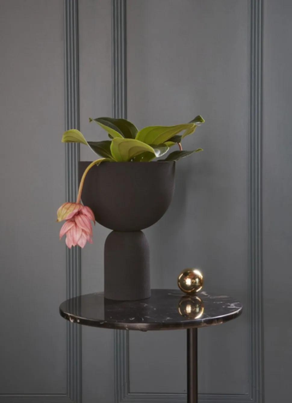 Schöner Beistelltisch, entworfen von Henrik Johannes Drecker. Auch dies ist ein weiterer Artikel aus der beliebten Serie „Castellum“. Der Tisch hat eine wunderschöne und einzigartige Goldkugel auf der Tischplatte, die ihn perfekt in die übrige Kollektion einfügt, die ursprünglich von der majestätischen dänischen Grundtvig-Kirche inspiriert wurde. Dekorieren Sie Ihr Zuhause mit diesem schönen Tisch. Sie können den Tisch als kleinen Couchtisch, neben Ihrem Sessel oder als schönen Nachttisch verwenden.