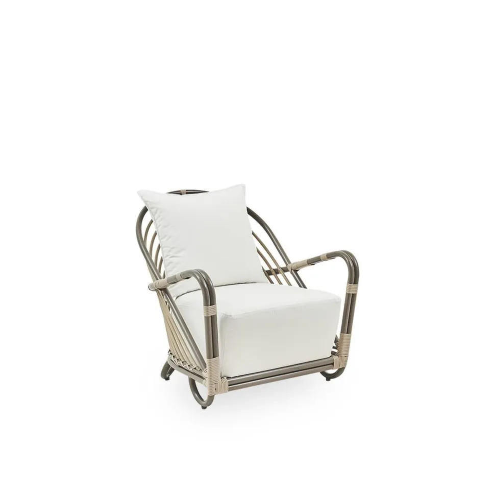 Der schöne Charlottenborg-Außensessel wurde von entworfen und besteht aus Alu-Rattan und ArtFibre: Alu-Rattan ist wetterfestes, pulverbeschichtetes Aluminium und ArtFibre ist eine Kunstfaser aus wartungsfreiem Polyethylen, die den UV-Strahlen der Sonne standhält. Aufgrund der witterungsbeständigen Materialien können die Möbel das ganze Jahr über ohne Wartung draußen stehen.