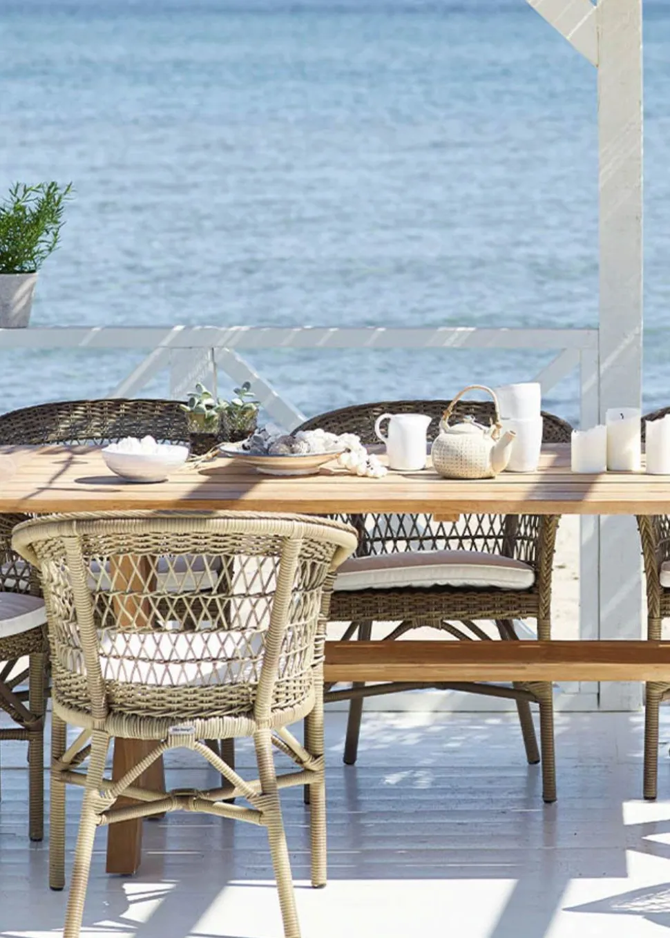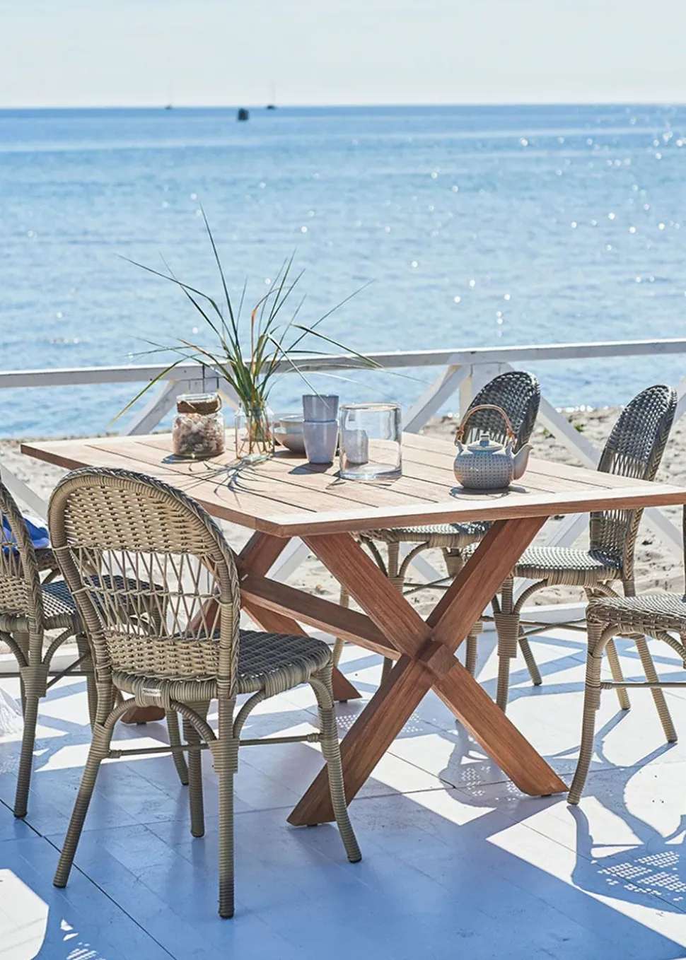 Die Latten des Esstisches haben Luft zwischen sich, so dass das Holz je nach Wetterlage arbeiten und nachgeben kann. Mit der Zeit bekommen die schönen Teakholzmöbel eine Patina, die ein schönes natürliches Grau ergibt. Das bedeutet auch, dass der Tisch nicht gewartet werden muss. Der Tisch kann jedoch mit Öl behandelt werden, wenn die schöne kastanienbraune Farbe erhalten bleiben soll, denn Teakholz hat einen schönen Glanz und ist ein sehr haltbares Material. Es ist windbeständig und kann das ganze Jahr über im Freien stehen, ohne dass die Qualität darunter leidet.