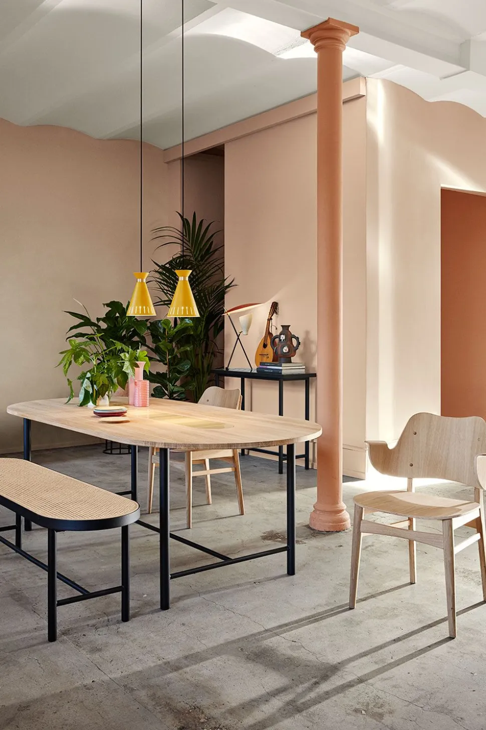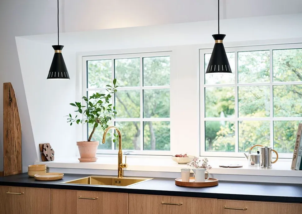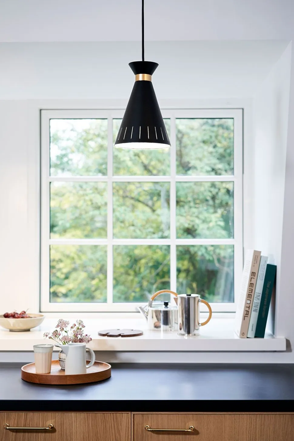 Die „Cone“-Lampenserie, entworfen vom dänischen Beleuchtungsmeister Svend Aage Holm-Sørensen, zeichnet sich durch die klassische Kegelform – daher der Name – und die bekannten Lichtlöcher an der Spitze aus, die in vielen der ikonischen Lampen von Svend Aage Holm-Sørensen wiederkehren. Das Design erzeugt ein fokussiertes Licht über dem Tisch, während es ein wenig dem umgebenden Raum überlässt und so eine einladende Atmosphäre schafft. Der elegante Messingring steht in schönem Kontrast zu den klassischen Farben, die sich leicht miteinander kombinieren oder einfach einzeln im Raum aufhängen lassen.