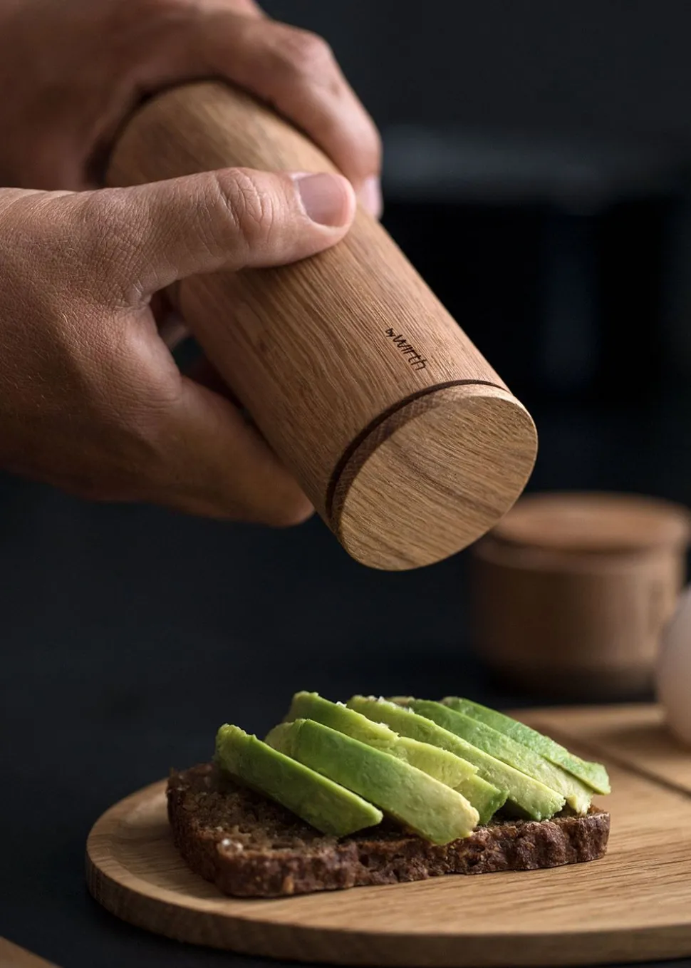Crush Me ist eine Salz- und Pfeffermühle von . Mit Crush Me wollten wir eine Mühle schaffen, die so wenig wie möglich auf den Tisch streut. Die Mühlen sind leicht zu befüllen und es gibt viel Platz für Salz und Pfeffer. Der Mahlgrad kann eingestellt werden, und je nachdem, wie die Mühlen angewinkelt sind, werden Salz und Pfeffer unterschiedlich verteilt. Crush Me hat einen flachen Boden, der den Dampf abschirmt, damit der Inhalt nicht verklumpt. Die Mühlen passen gut zu den Salzstreuern Salt Me und der Serve Me-Serie.