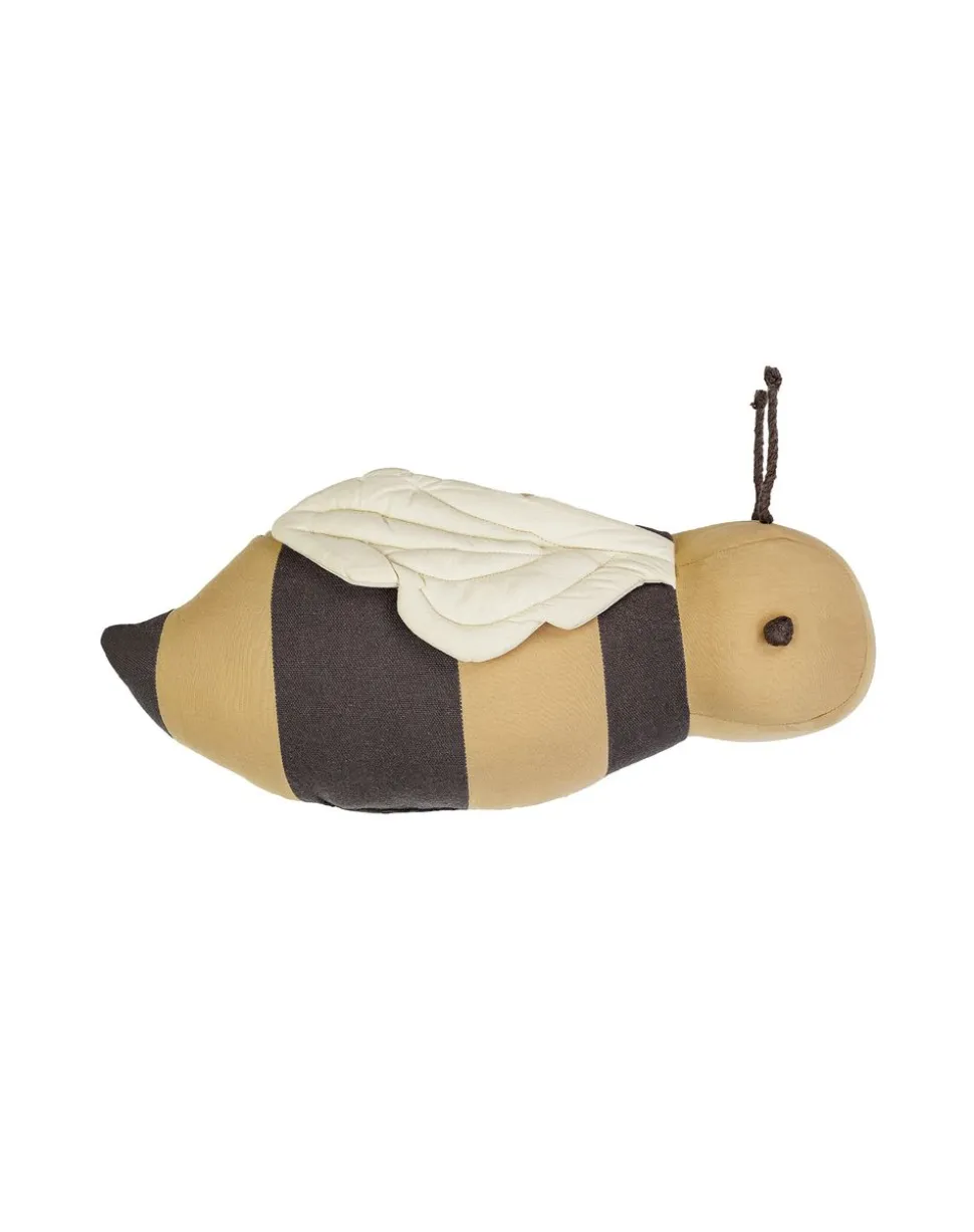 Nehmen Sie Ihr Kind mit auf eine abenteuerliche Reise zum Planeten Biene mit dem Buzzy Bee Kissen von . Dieses bezaubernde Kissen in Form einer Biene ist aus weichem, honigfarbenem Baumwollpopeline handgefertigt und mit grauen Streifen und weich gepolsterten Flügeln verziert, die Abenteuer zum Greifen nah versprechen. Die niedlichen dunkelgrauen Zöpfe in Form von Fühlern verleihen dem Kissen einen Hauch von Fantasie, während die weiche Polyesterfüllung dafür sorgt, dass kein Reißverschluss erforderlich ist, was es sowohl sicher als auch anschmiegsam macht. Dieses bezaubernde Kunsthandwerk ist nicht nur ein Kissen, sondern ein Tor zu unendlichen Geschichten und Träumen, perfekt, um die Fantasie Ihres Kindes zu beflügeln und glückliche Momente zu schaffen.
