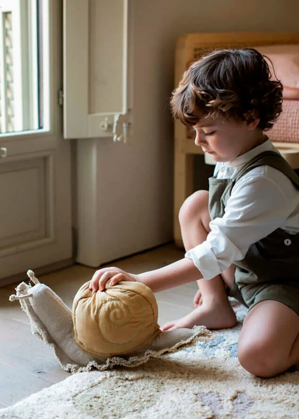Das Kissen Lazy Snaili von ist ein Kinderkissen und ein Kinderteddybär in einem. Der Teddybär aus der Reihe Fantasy Garden hat die Form einer niedlichen Schnecke und ist die perfekte Ergänzung für jedes Kinderzimmer. Das Kissen ist weich und bequem, um den Kopf darauf auszuruhen, und es ist auch ein lustiger und interaktiver Teddybär, der zum Spielen und Kuscheln verwendet werden kann. Die Schnecke ist nicht nur ein Kissen – sie ist ein lebendiger Spielkamerad, der zu stundenlangem fantasievollem Spiel anregen kann. Mit seinem herrlich weichen Stoff und seiner lustigen Form wird dieser Kinderteddybär sicher ein Hit für Kinder und Erwachsene sein.
