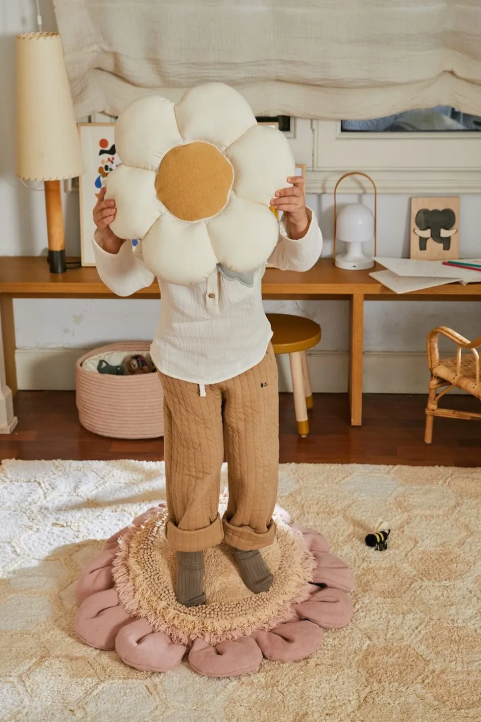 Tauchen Sie ein in eine blumige Welt der Gemütlichkeit mit dem Kissen Little Daisy von . Diese handgefertigte Schönheit in Form einer blühenden Blume ist aus weichem Baumwollpopeline gefertigt. Gefüllt ist es mit einer weichen Polyesterfüllung, die es zum idealen Kuschelkameraden für Ihre Kleinen macht. Kein Schnickschnack und kein Reißverschluss – nur purer Komfort in voller Blüte, der zum Spielen und Entspannen in Kinderhöhe einlädt. Dieses bezaubernde Kissen lässt sich perfekt mit anderen von der Natur inspirierten Elementen oder weichen Textilien kombinieren und schafft eine harmonische und einladende Atmosphäre.