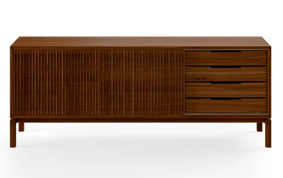 Das Ebbe Sideboard AK2060 von , entworfen von Nissen & Gehl, verkörpert eine raffinierte Schlichtheit, hinter der sich eine Fülle sorgfältig gearbeiteter handwerklicher Details verbirgt. Dieses exquisite Stück verfügt über ikonische Schiebetüren mit wiederholten Lamellen, die dem Sideboard Transparenz, Tiefe und Persönlichkeit verleihen. Die feinen Eckdetails und die präzisen Schwalbenschwanzverbindungen unterstreichen die hervorragende Handwerkskunst, die hinter dem eleganten Design steckt.
