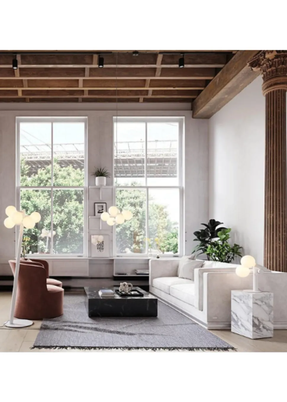 - Die Leuchte enthält sieben Sphere IV-Glühbirnen