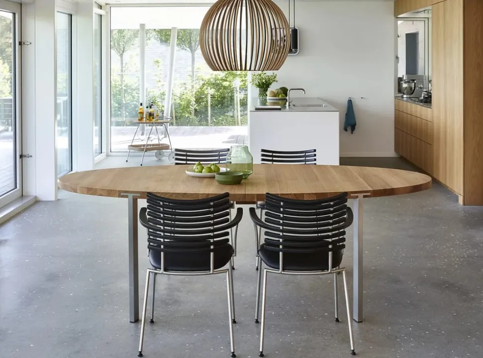Der ovale Ausziehtisch GM 2142 & 2152 aus der Naver-Kollektion, entworfen von Nissen & Gehl, ist der Inbegriff klassischer skandinavischer Eleganz.