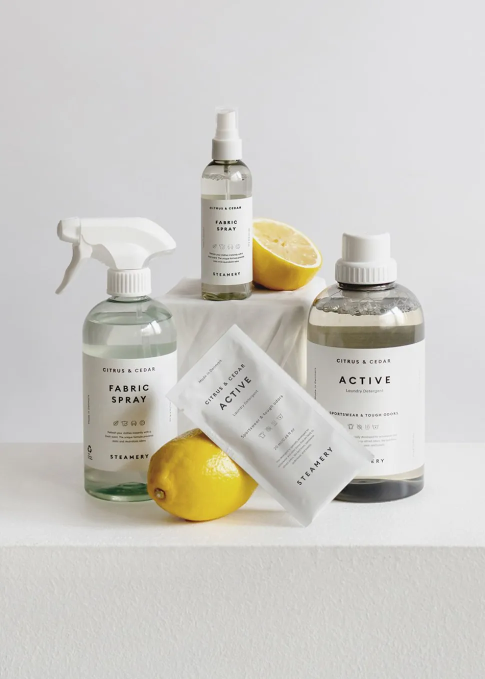 Das abbaubare Textilspray von Steamery verleiht Ihrer Kleidung und Ihren Heimtextilien einen sanften und anhaltenden Duft von Rose und Moschus. Eine einfache Methode, um Ihre Kleidung zwischen den Wäschen frisch zu halten.
