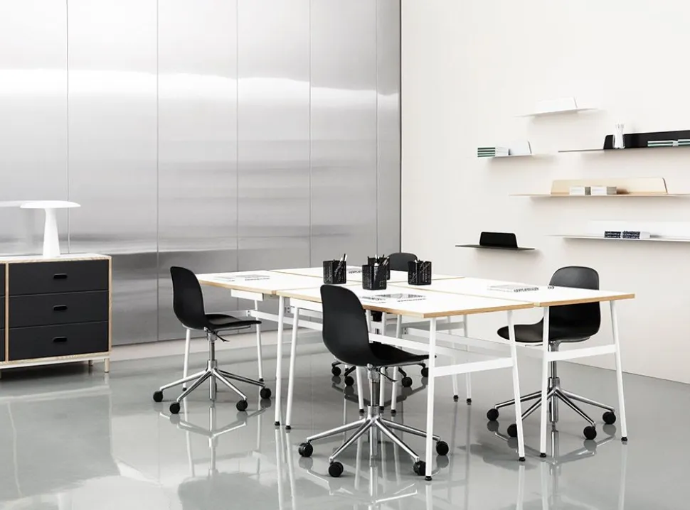 Das drehbare Gestell aus Aluminium in Schwarz, Weiß oder poliert verleiht dem Form-Stuhl ein exklusives Aussehen und eine komfortable Bewegungsfreiheit. Dies macht den Stuhl zur ersten Wahl u.a. für Restaurants und Konferenzräume. Der Drehrahmen ist mit 4 oder 5 Beinen erhältlich, die ohne bzw. mit Rädern geliefert werden.