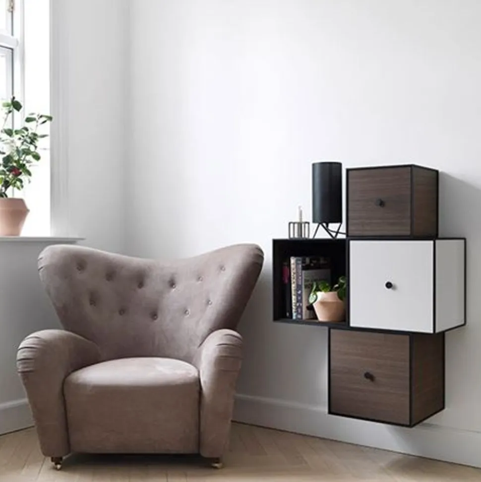 Frame ist eine flexible Aufbewahrungslösung für quadratische Kartons in kubischen Rahmen. Der Rahmen kann direkt an die Wand gehängt, gestapelt oder frei auf dem Boden stehen. Der Deckel kann komplett abgenommen oder als Tür montiert werden. Kombinieren Sie Frame zu einem klassischen Bücherregal, einer einzigartigen Skulptur oder etwas ganz anderem. Die Möglichkeiten sind endlos und Sie können so Ihr ganz persönliches Design und Ihren ganz persönlichen Ausdruck kreieren.