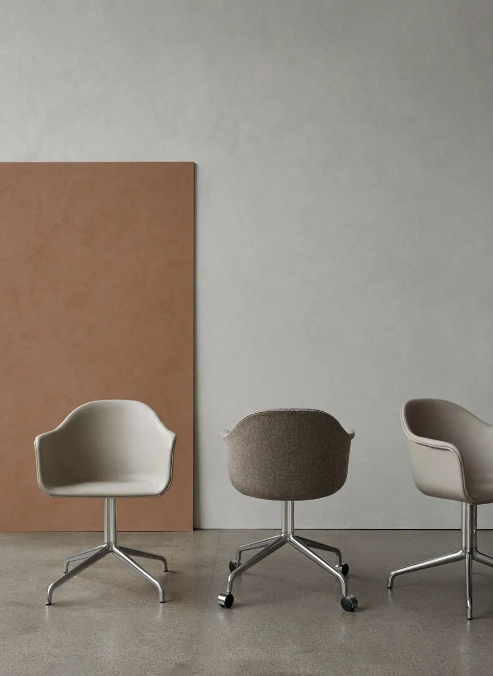 Der Harbor Dining Chair ist mit einer Polsterung in einer Vielzahl von Stoffen und Farben sowie mit Rollen und einem Untergestell mit Rückstellmöglichkeit erhältlich. Bitte kontaktieren Sie uns für weitere Informationen per E-Mail oder Telefon.