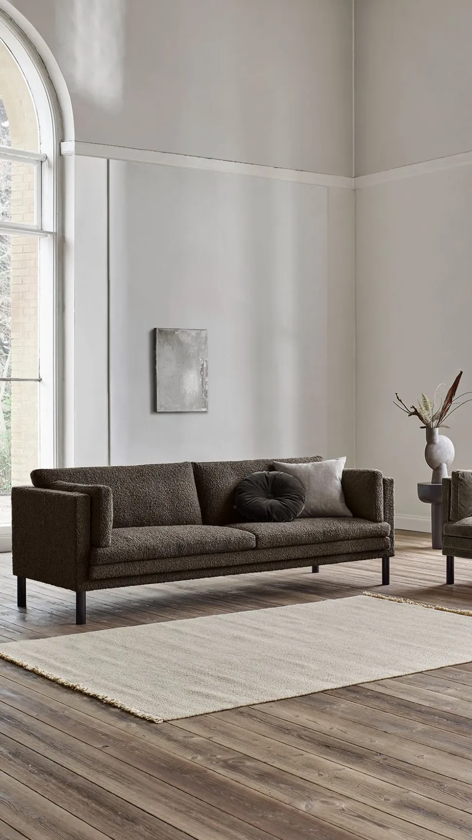 Das 953 von , entworfen von Jens , ist der Inbegriff von zeitlosem Komfort und nordischer Eleganz. Der massive Holzrahmen des Sofas ist mit einem Nozag-Federkern ausgestattet, der mit Polyurethanschaum ummantelt ist und für ein stabiles und bequemes Sitzerlebnis sorgt. Die Sitzkissen bestehen aus einer geschichteten HR-Schaumkonstruktion, bei der der festere Schaumstoff für Halt sorgt, während die weichere Oberseite einen abgerundeten Komfort bietet, der von Polydown umhüllt ist. Die Rückenkissen sind mit demselben luftigen Polydown gefüllt und sorgen für ein entspanntes und einladendes Aussehen. Das Modell ist sowohl mit Stoff- als auch mit Lederbezug erhältlich und passt sich mit seinen vielen Optionen leicht an verschiedene Wohnstile an.