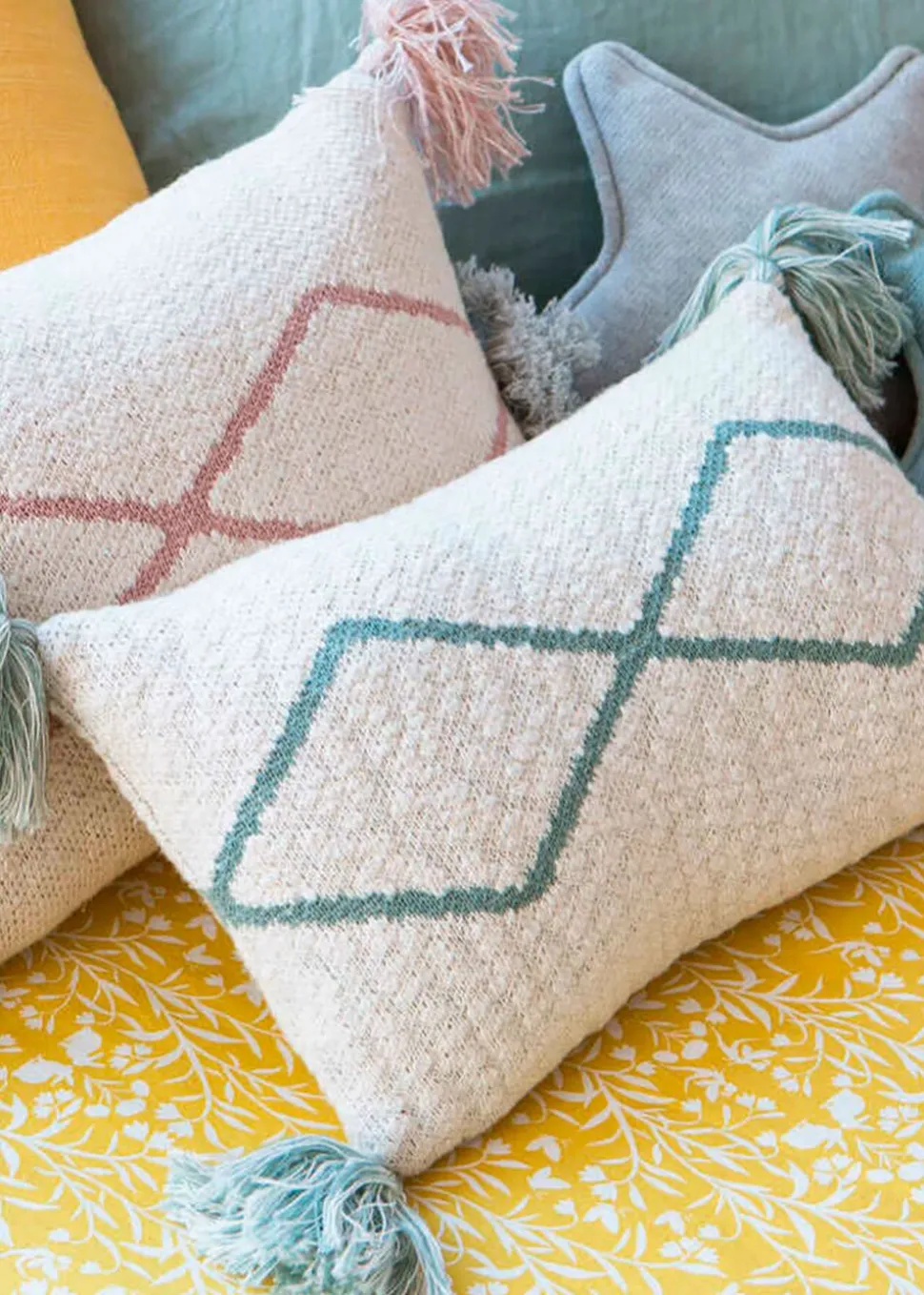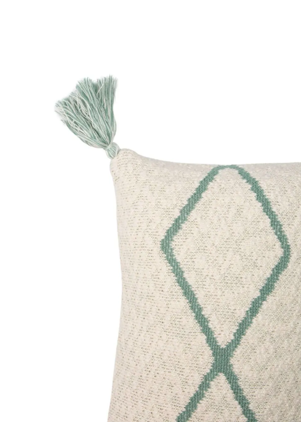Das Strickkissen Little Oasis von ist ein hübsches Kissen mit einem weichen und dekorativen Element für Ihre Einrichtung. Der Kissenbezug ist aus 100% weicher, gestrickter Baumwolle in einer natürlichen Farbe und mit einem schönen Rautenmuster in sanften Farben verziert. Die kleinen Quasten in den Ecken verleihen dem Kissen eine besonders gemütliche Note. Das Kissen hat einen Reißverschluss und ein herausnehmbares, weiches Polyfill-Kissen im Inneren, so dass es leicht zu reinigen und frisch zu halten ist.