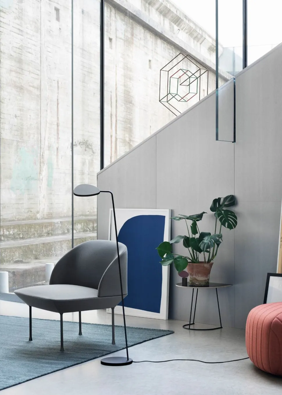 Diese elegante und einzigartige Stehleuchte wurde von Broberg & Ridderstråle entworfen. Das Blatt hat ein asymmetrisches Aussehen, was dazu geführt hat, dass die Lampe manchmal (im rechten Winkel) eine grafische und blattähnliche Silhouette erzeugt.
