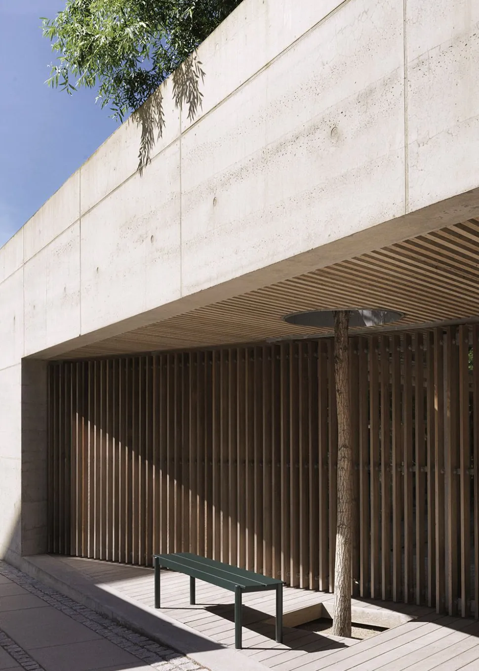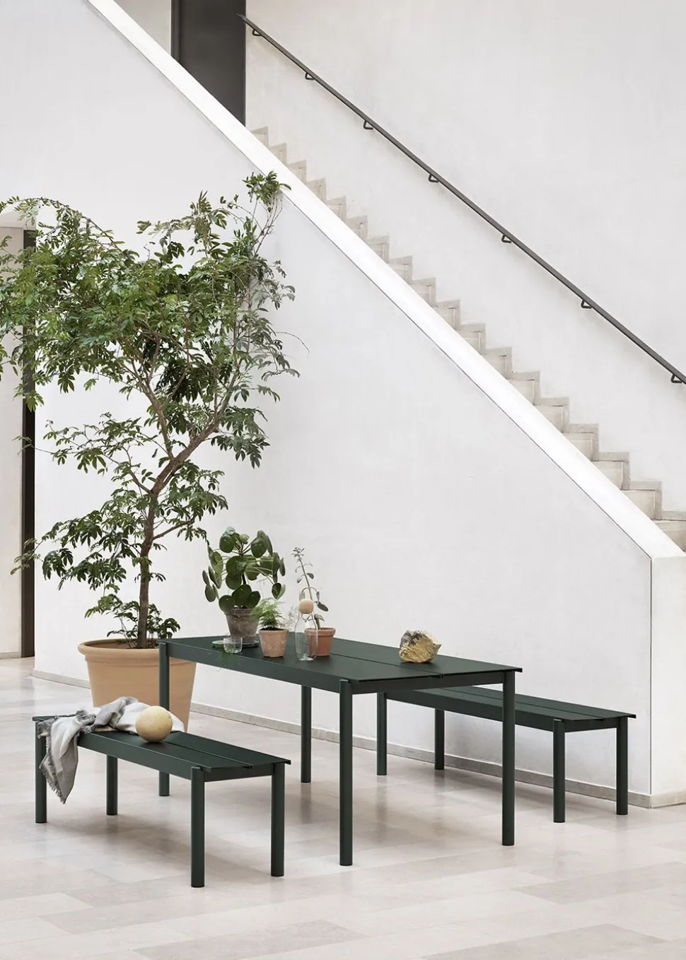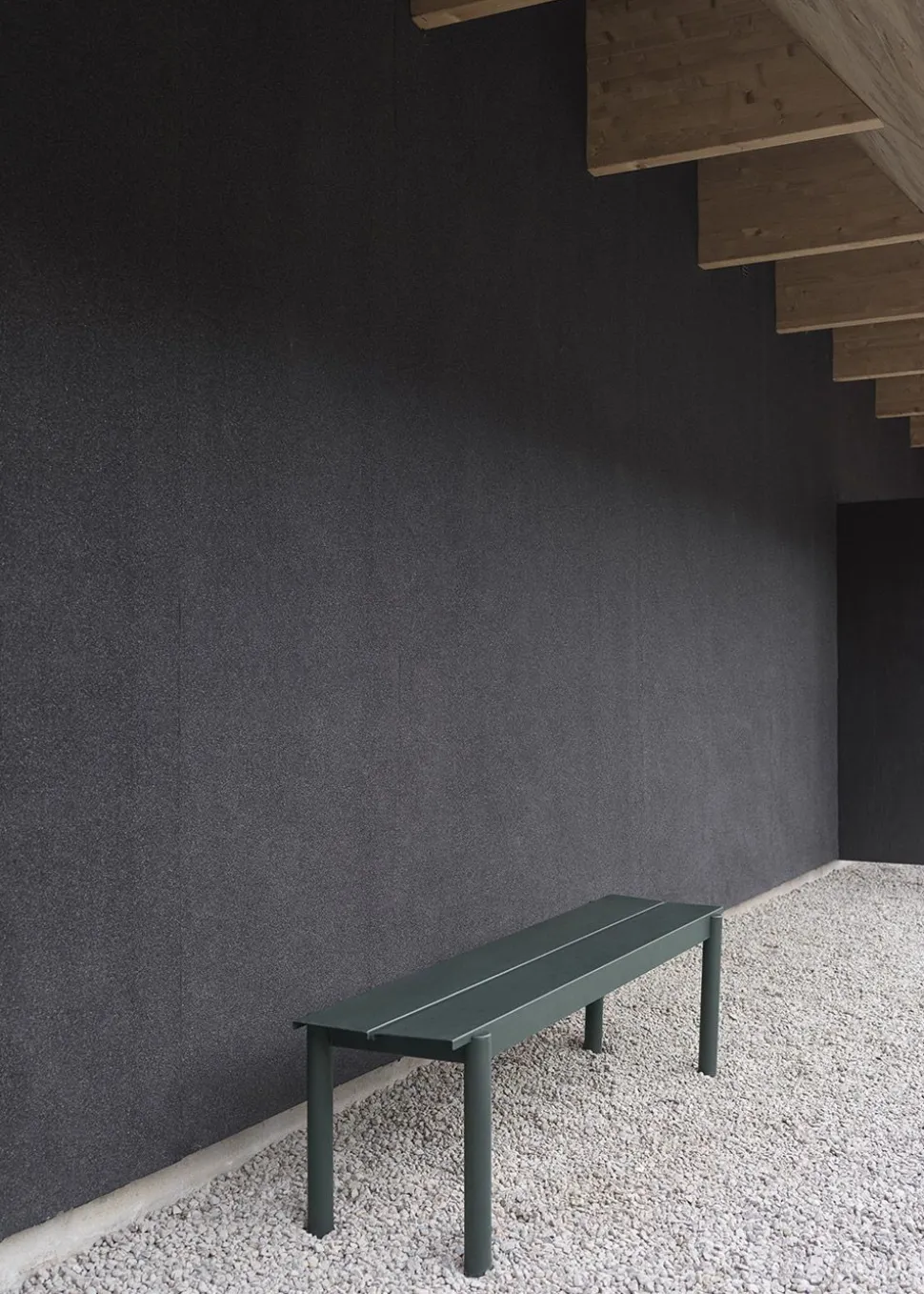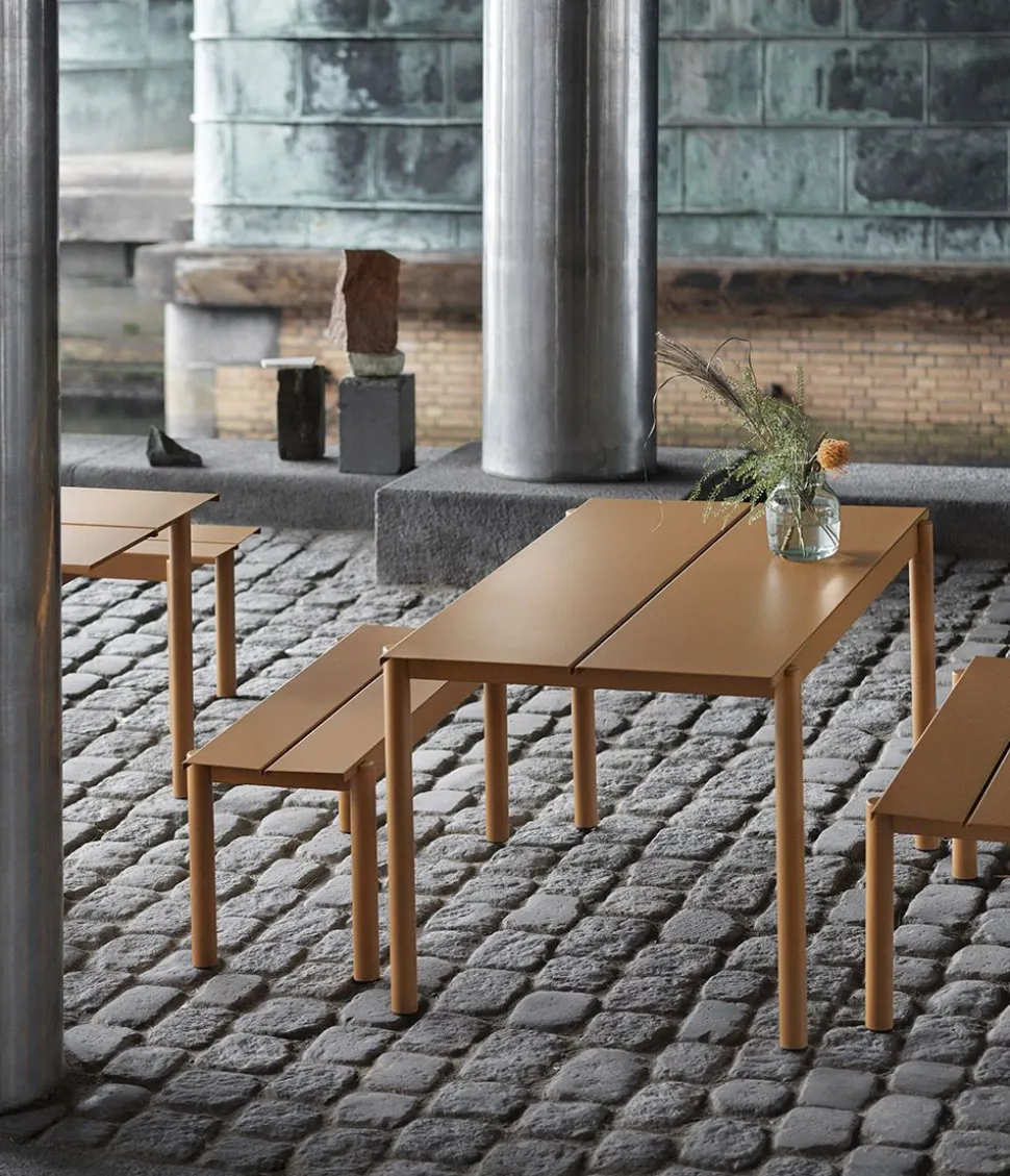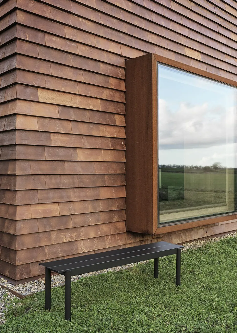 Linear Steel Bench wird von hergestellt. Die Bank ist schlicht, elegant und aus lackiertem Stahl für den Außeneinsatz gefertigt.