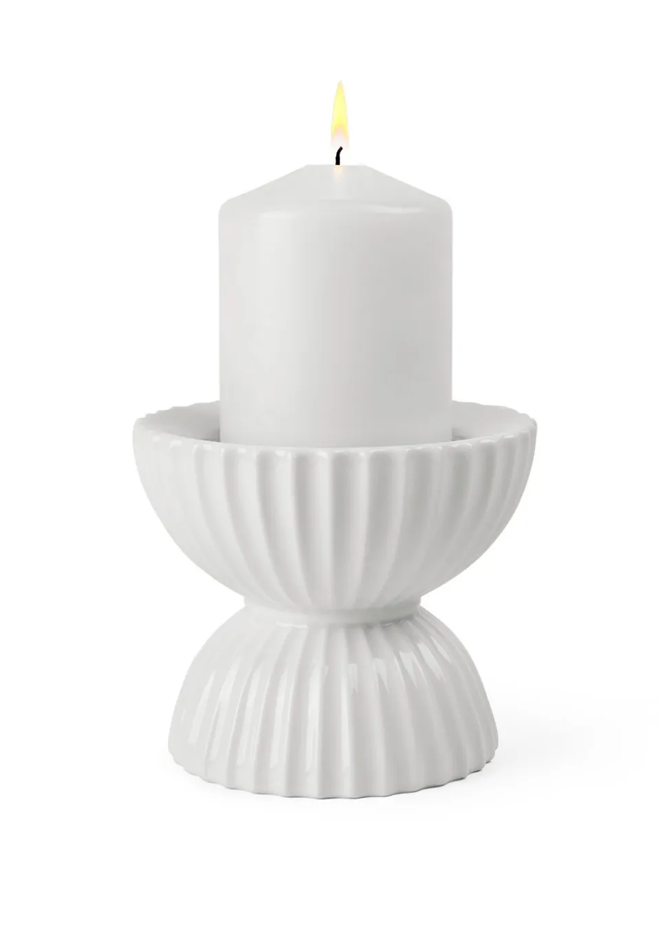 Lyngby Tura Block Candle Holder von Lyngby Porcelæn ist ein schöner und einfacher Kerzenhalter für Blockkerzen. Mit diesem skulpturalen Kerzenhalter erhalten Sie ein einfaches und stilvolles Design, das perfekt in jede moderne Inneneinrichtung passt. Die markanten Formen des Kerzenhalters und die ikonischen Lyngby-Gewehre schaffen einen modernen Kontrast zwischen dem Strengen und dem Weichen, während die halbkugelförmigen Details dem voluminösen Design eine gewisse Leichtigkeit verleihen.