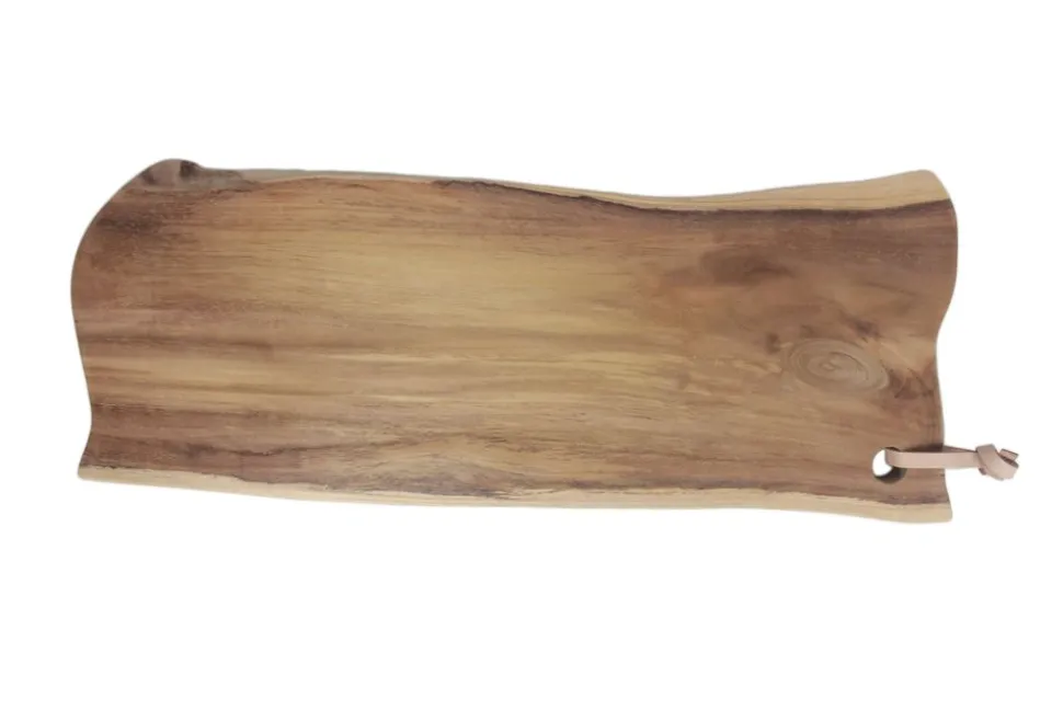 Lyon Schneidebrett, Muubs. Das organisch geformte Schneidebrett aus natürlichem Teakholz von Muubs ist ein ästhetisches Meisterwerk, bei dem die einzigartige Struktur und Form des Holzes die Grundlage für ein funktionelles Design bildet. Jedes Schneidebrett ist ein Unikat mit natürlichen Unebenheiten, Löchern und Details, die jedes Stück zu einem individuellen Kunstwerk machen. Das robuste Teakholz sorgt für Langlebigkeit, während der natürliche Charme einen unvergleichlichen visuellen Reiz schafft.