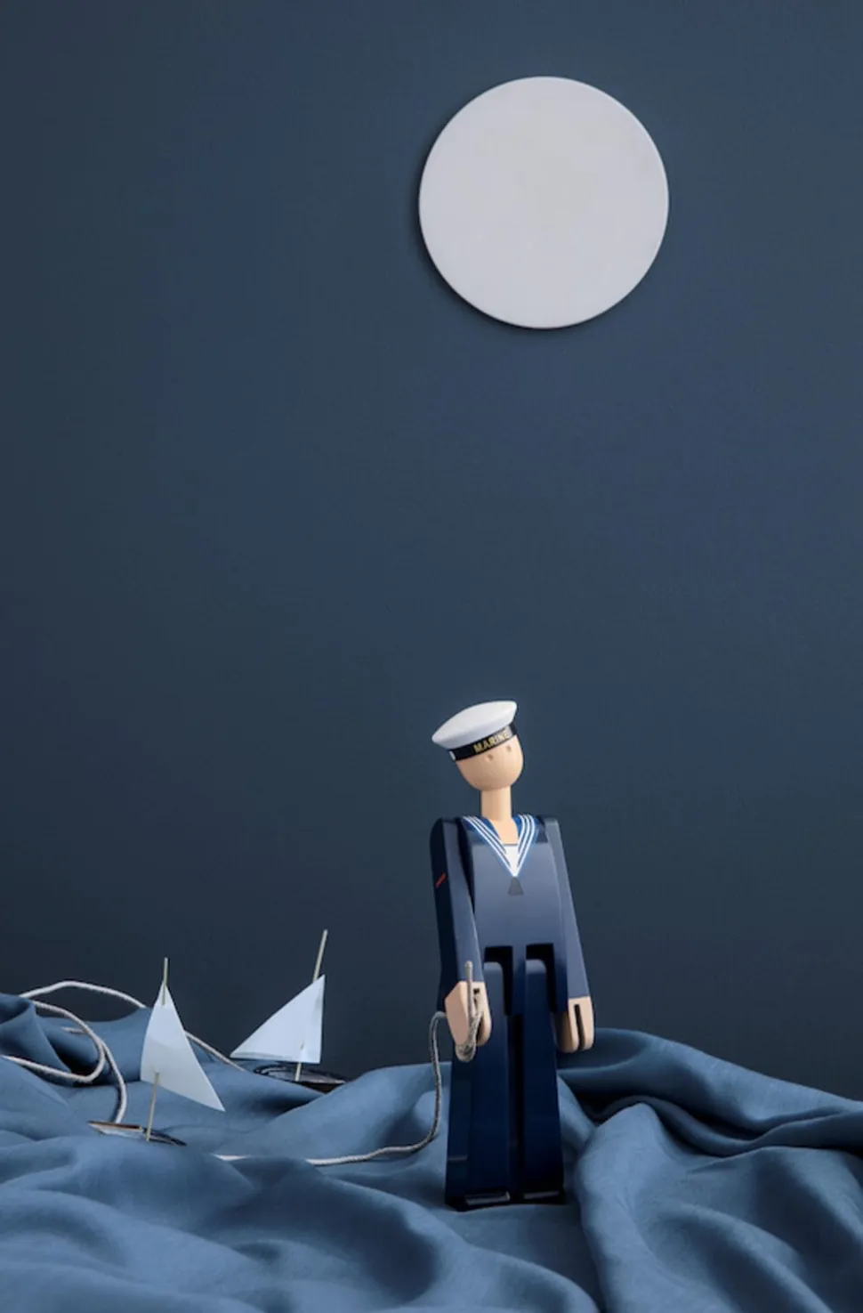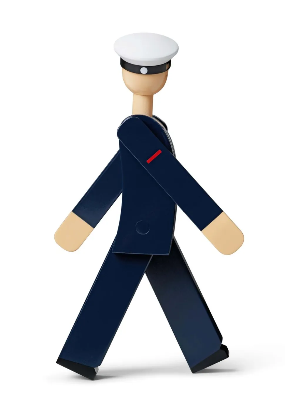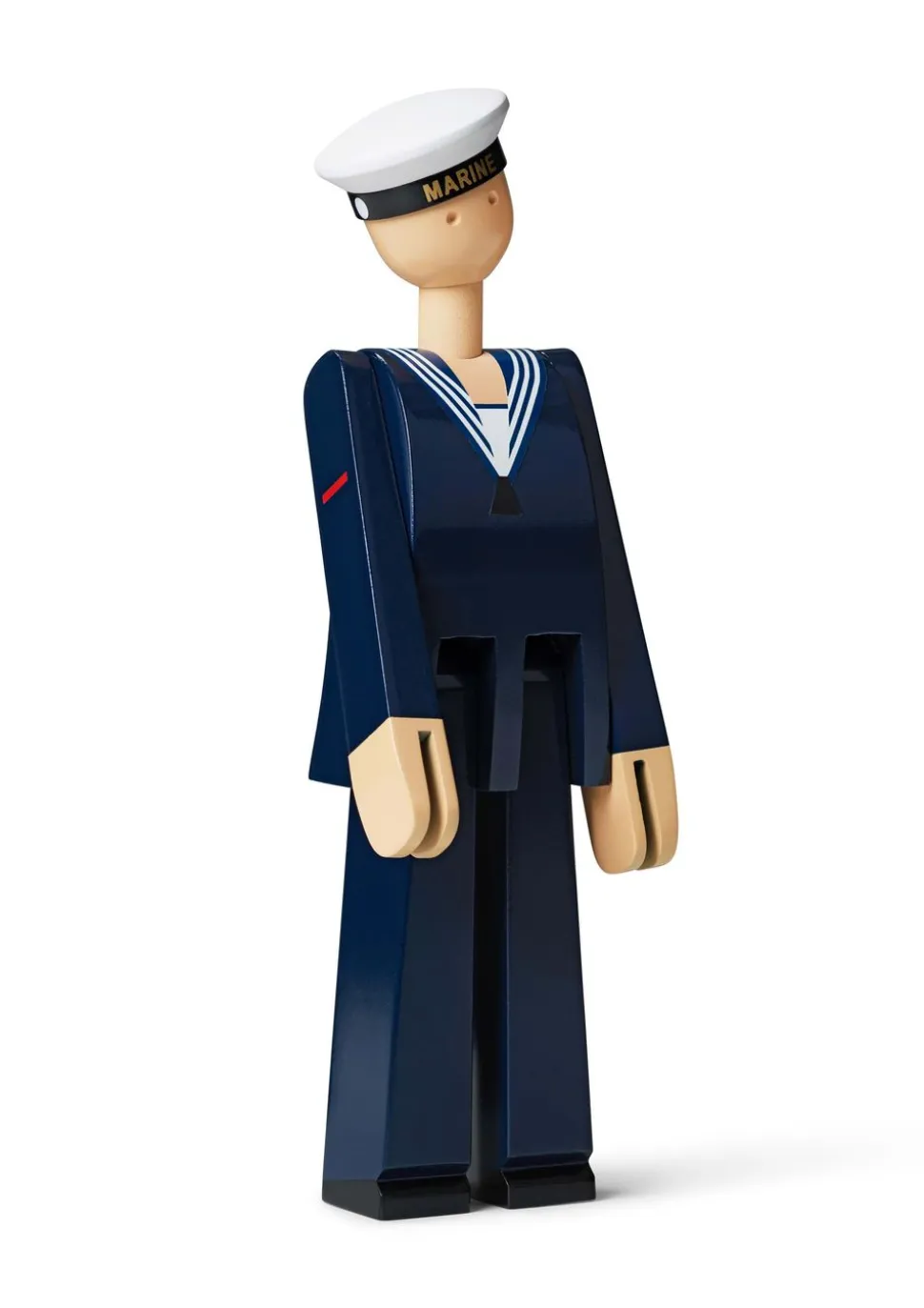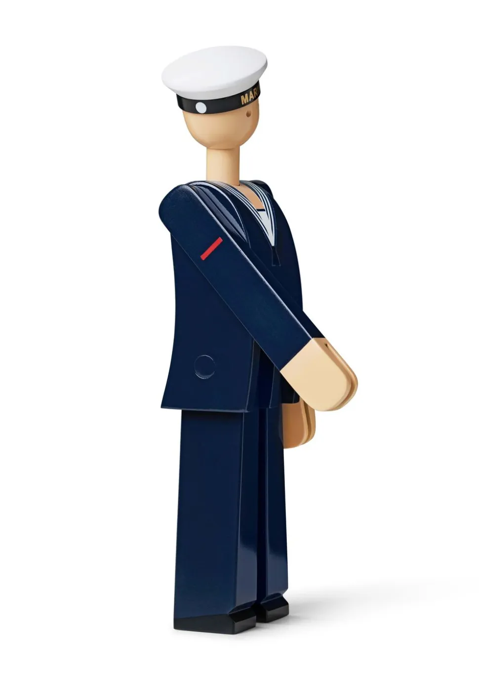 Die schöne Kay Bojesen Marine aus Buchenholz ist mit einer dunkelblauen Uniform und einem schiefen Hut bemalt. Der charmante Look passt perfekt zu Kay Bojesens anderen Kunstklassikern.