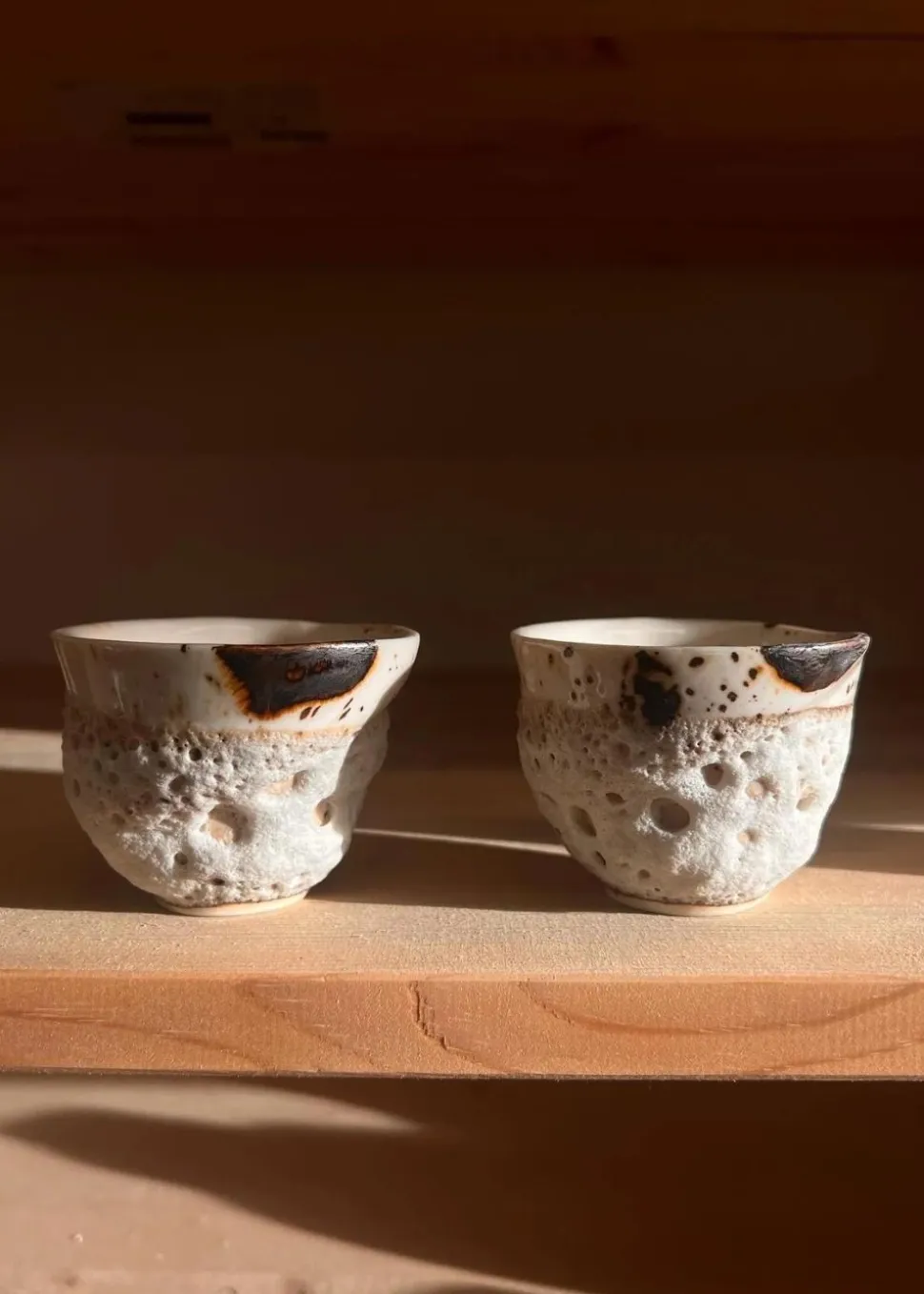 Da die Tassen in Handarbeit hergestellt werden, können geringfügige Abweichungen in Farbe und Glasur auftreten. Dies ist völlig normal und hat keinen Einfluss auf die Qualität, das allgemeine Aussehen oder den Gebrauch des Produkts. Das ist der Charme einer handgefertigten Tasse. Die Effektglasur kann aufgrund der Hohlräume und Blasen empfindlich sein. Die Glasur ist matt und kann ein wenig bröckeln, daher gibt es keine Garantie auf die Glasur. Das Lebendige und Schöne an der Tasse ist, dass sie den Hauch des Lebens spürt, so wie die Natur sich verändert.