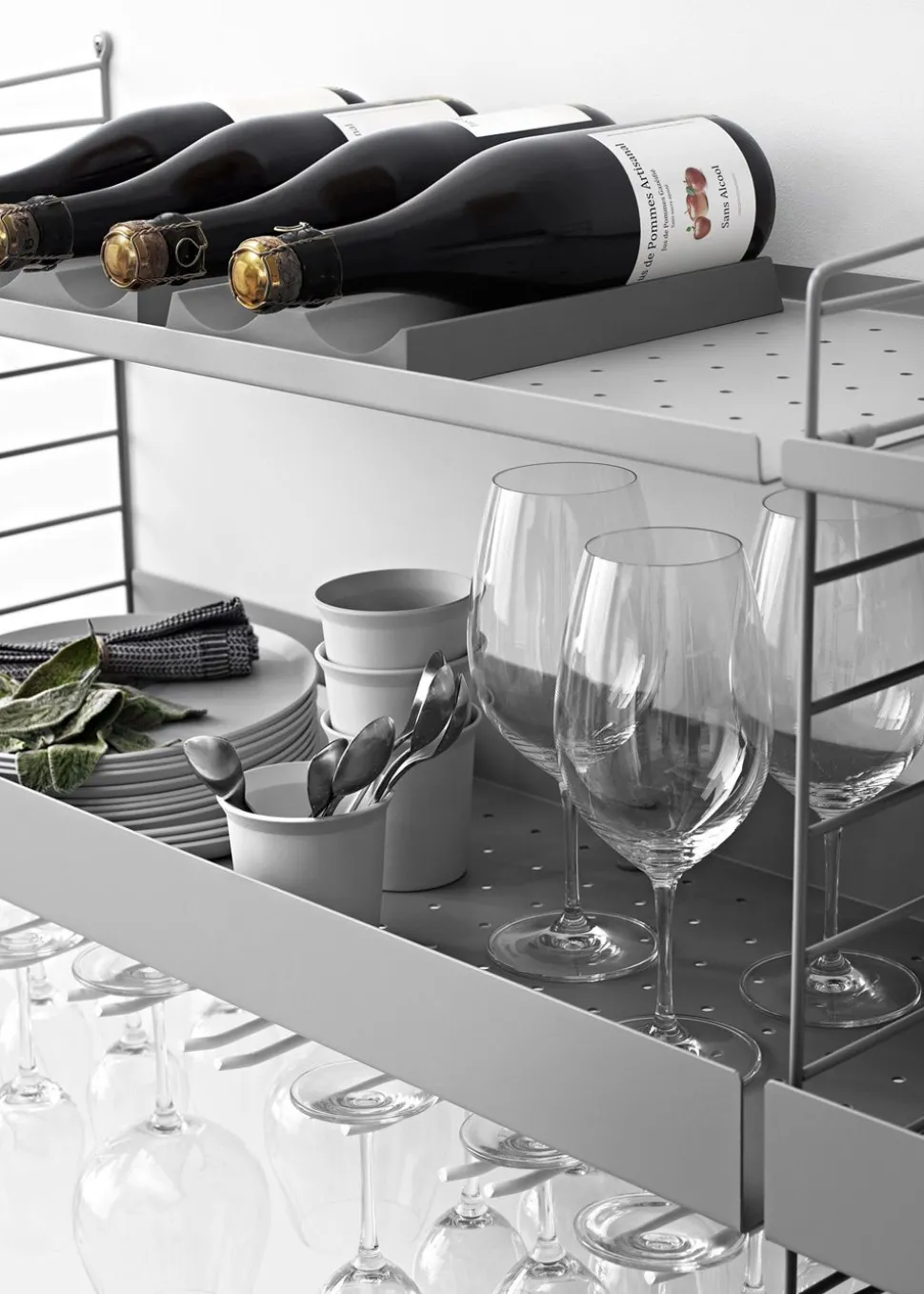 Metal Shelf ist Teil des String-Regalsystems, bei dem Funktionalität und individuelle Gestaltung im Vordergrund stehen. Das Regalsystem bietet unendliche Möglichkeiten für die Aufbewahrung und Kreativität. Mit einer großen Auswahl an Varianten, Farben und Materialien ist das String-Regalsystem der perfekte Weg, um Ihr eigenes Design zu gestalten. Die Serie besteht aus Boden-, Wand- und Flex-Paneelen, die eine Basis für Regale und Ablagen bilden. Es können Regale, Schränke, Bordüren, Zeitschriftenhalter und verschiedene Gadgets hinzugefügt werden. Das flexible System eignet sich perfekt für das moderne Zuhause, in dem einige wenige Elemente die Grundlage für die Inneneinrichtung des gesamten Hauses bilden können und sich leicht an den jeweiligen Raum anpassen lassen, egal für welchen Zweck.