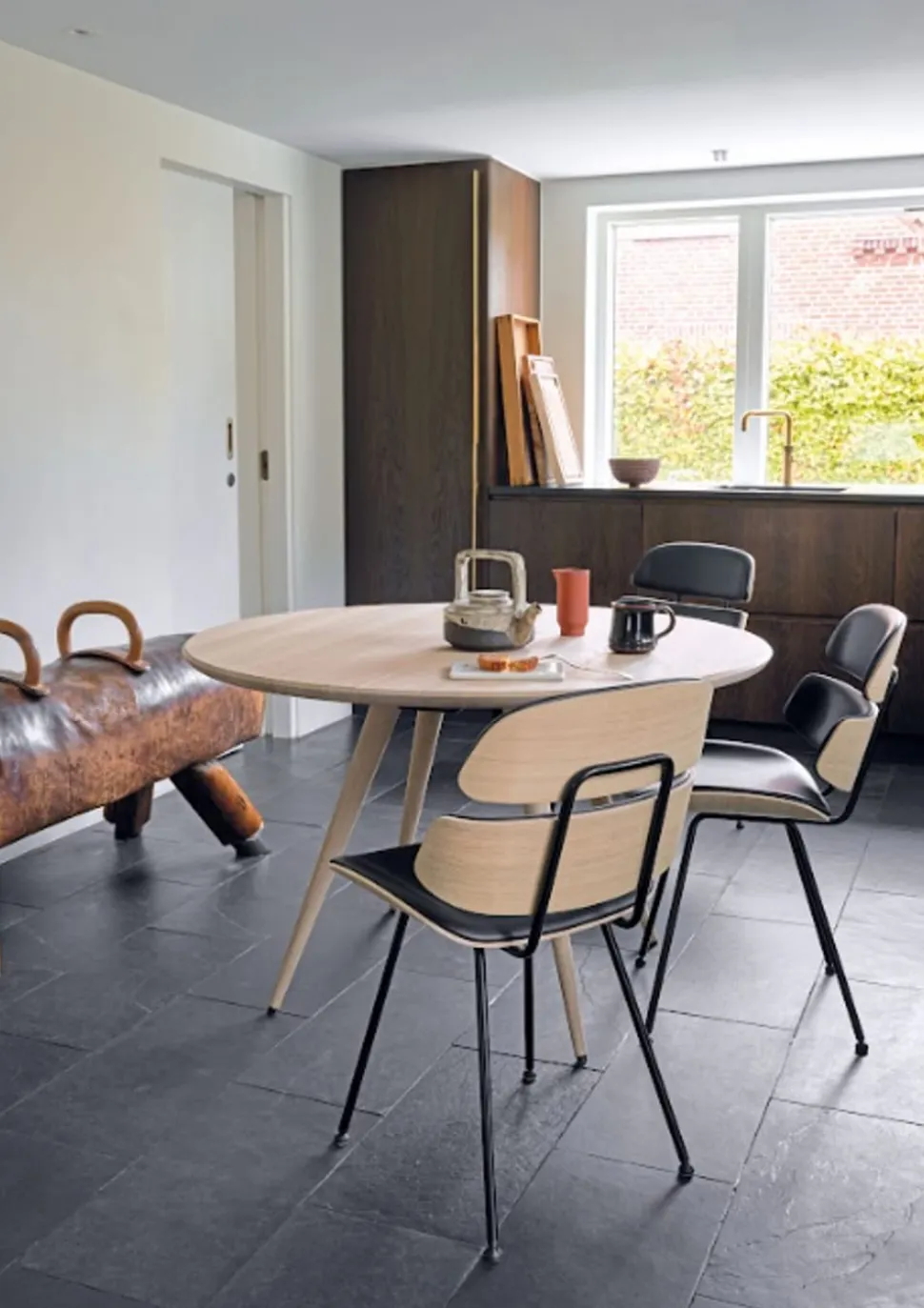 Der Midas-Stuhl GM 575 von Never Collection, entworfen von Susanne Grønlund, ist eine bemerkenswerte Verschmelzung von dänischen und internationalen Designtraditionen. Der aus Formholz in Esche, Eiche oder Nussbaum gefertigte Stuhl zeichnet sich durch weiche, einladende Kurven aus, die außergewöhnlichen Komfort bieten. Die sorgfältig konturierten Holzelemente mit ihren unterschiedlichen Abständen erzeugen ein dynamisches Linienspiel, das seinen visuellen Reiz noch verstärkt. Das schwarz pulverbeschichtete Gestell verleiht dem Stuhl Leichtigkeit und moderne Eleganz.