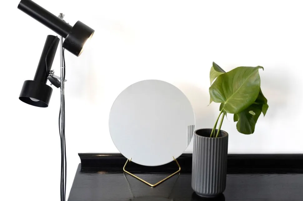 Standing Mirror wird von Moebe hergestellt. Der Spiegel wird durch ein einzelnes Spiegelglas geformt. Der Rahmen für den Spiegel ist in 2 Farben erhältlich und ist aus Metall gefertigt. Standing Mirror kann auf Ihrem Tisch, Schrank oder Regal platziert werden.