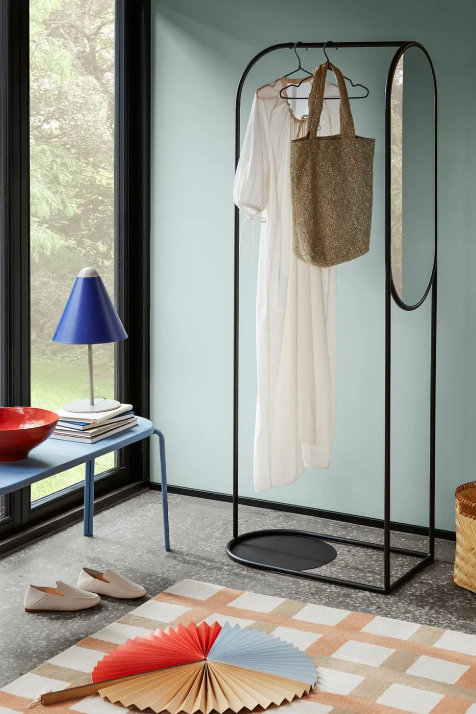 - Material: Gestell: pulverbeschichteter Stahl. Esche furniert oder gepolstert (34% Polyester, 32% Viskose, 18% Baumwolle, 16% Leinen).