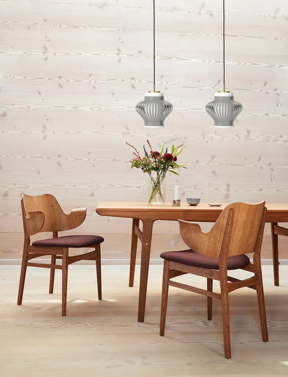 ‚Opal Lamella‘, entworfen vom Dänen Svend Aage Holm-Sørensen, basiert auf der Liebe, die viele Lampendesigner und Beleuchtungsmeister in den letzten Jahrzehnten für Opalglas hegen. Das diffuse und gedämpfte Licht von Opalglas schafft eine attraktive Atmosphäre, die im Raum einladend wirkt. Der Metallschirm der Leuchte umschließt das weiße Opalglas, wobei die Rillen des Schirms ein einzigartiges Licht in den Raum werfen. Mit einer Auswahl an vertrauten Farben aus dem Universum sowie raffinierten Messingdetails hat die Lampe einen retro-modernen Look, der sich leicht in die Wohnung einfügen lässt.