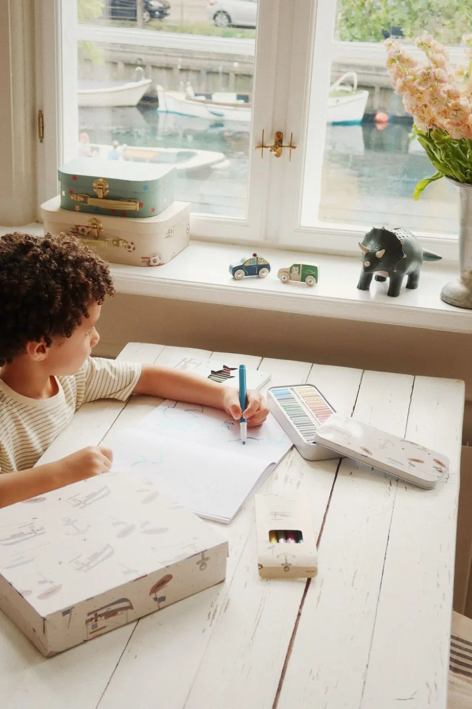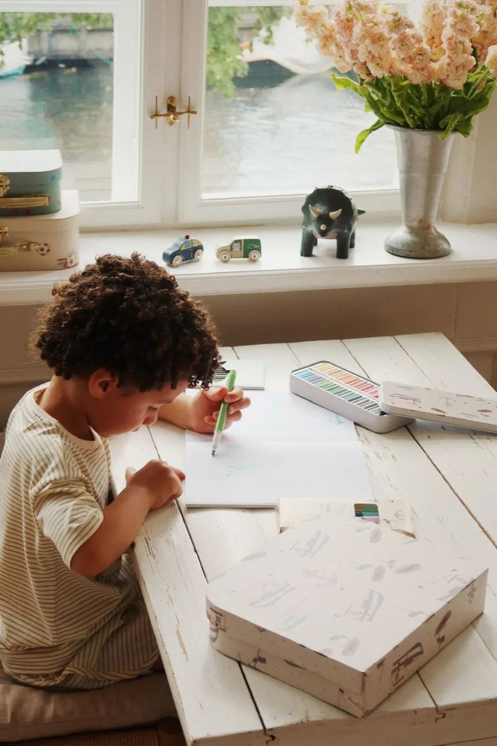 Stellen Sie Dino in ein Regal zwischen Büchern und kleinen Figuren oder lassen Sie es frei auf dem Schreibtisch stehen, als dekoratives Element, das zum Lernen über Werte und Verantwortung einlädt. Kombinieren Sie es mit anderen farbenfrohen Details von für einen harmonischen und fantasievollen Look im Kinderzimmer.
