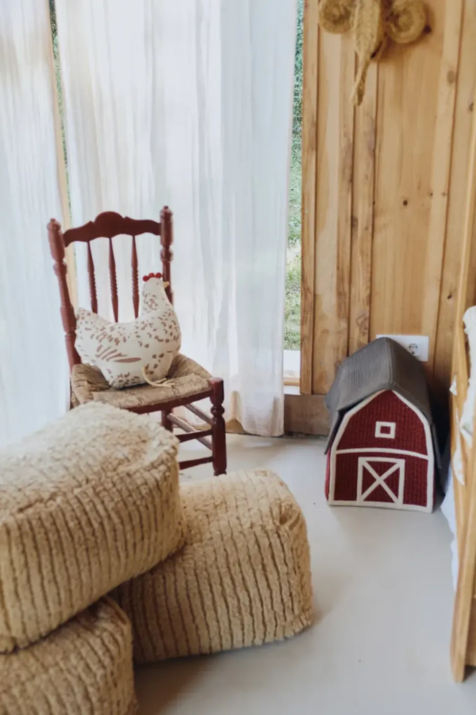 Verwenden Sie den Pouf Haystack als vielseitige Sitzgelegenheit, als Fußhocker oder auch als dekoratives Element im Wohnzimmer, Schlafzimmer oder Kinderzimmer. Kombinieren Sie ihn mit natürlichen Textilien, hellen Holzmöbeln und weichen Teppichen, um eine gemütliche und einladende Atmosphäre zu schaffen, die Ruhe und Harmonie ausstrahlt.