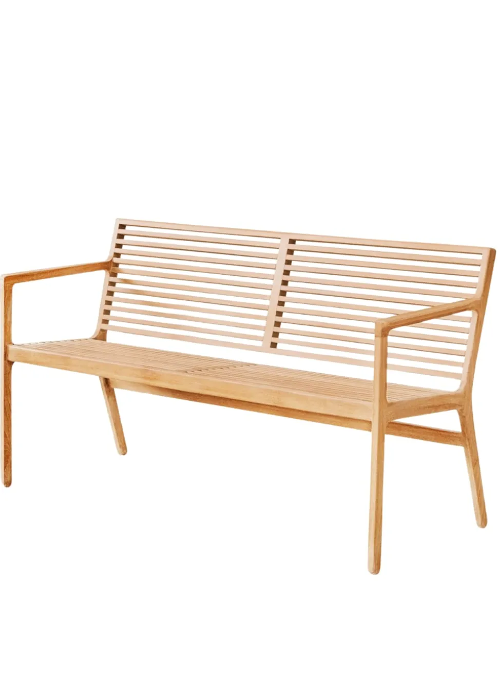 Die aus nachhaltigem Kernteakholz gefertigte Bank kombiniert Langlebigkeit und natürliche Schönheit mit der charakteristischen Fähigkeit des Materials, Wind und Wetter zu widerstehen. Im Laufe der Zeit entwickelt das Holz eine schöne silbergraue Patina, die das natürliche Aussehen des Möbels noch verstärkt.