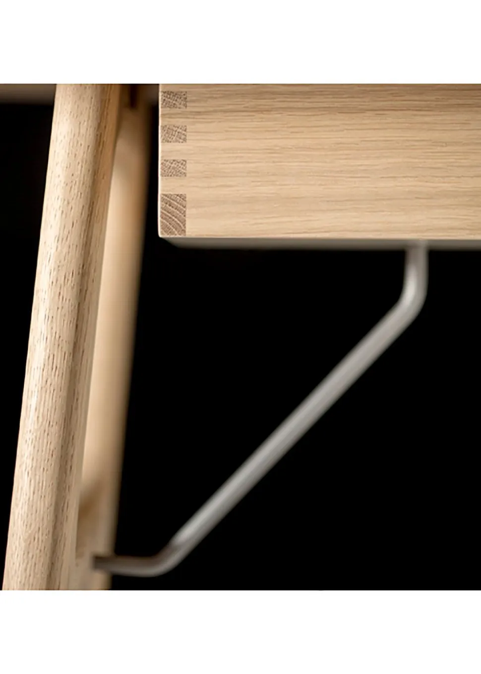 RM13 wurde von im Jahr 2013 entworfen. Der Schreibtisch ist mit einer Tischplatte in Eiche, Nussbaum, Laminat oder Linoleum erhältlich. Der Rahmen und die Schublade sind in Eiche oder Nussbaum erhältlich. Der Tisch ist unbehandelt, lackiert, seifenbehandelt oder gebeizt erhältlich.