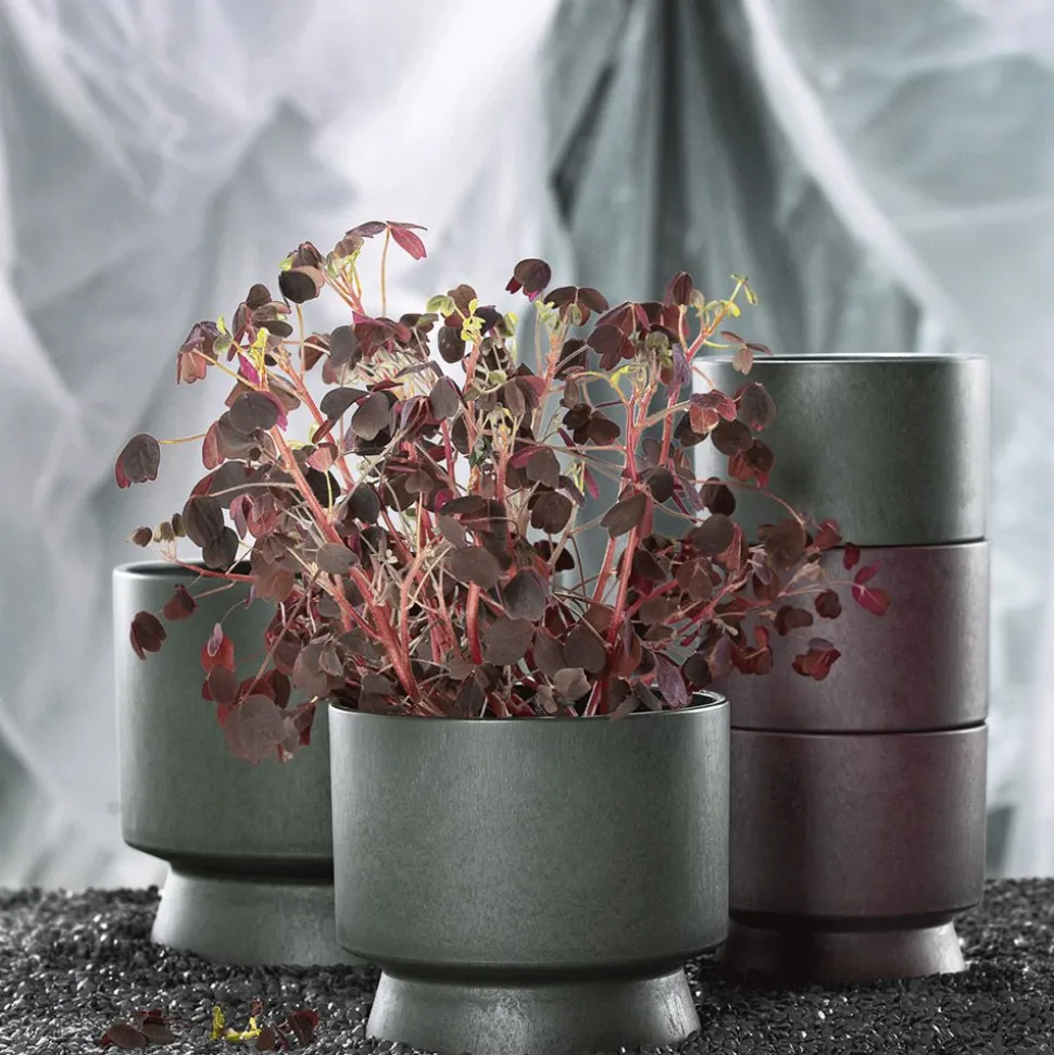 Die Materialien tragen auch dazu bei, eine organisch anmutende Oberfläche zu schaffen und die Schale des Blumentopfs leicht und greifbar zu machen. Das Design ist klassisch, aber praktisch. Mit der Möglichkeit, die Töpfe zu stapeln, der 100-prozentigen Flüssigkeitsdichtigkeit mit der Möglichkeit, sogar Abflusslöcher zu bohren, und dem haltbaren Material, das bis zu -20C˚ standhält, sind die Töpfe ideal für den Innen- und Außenbereich.