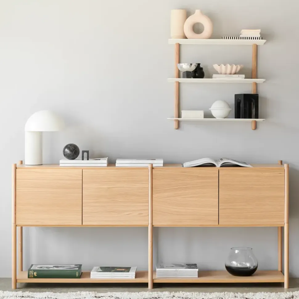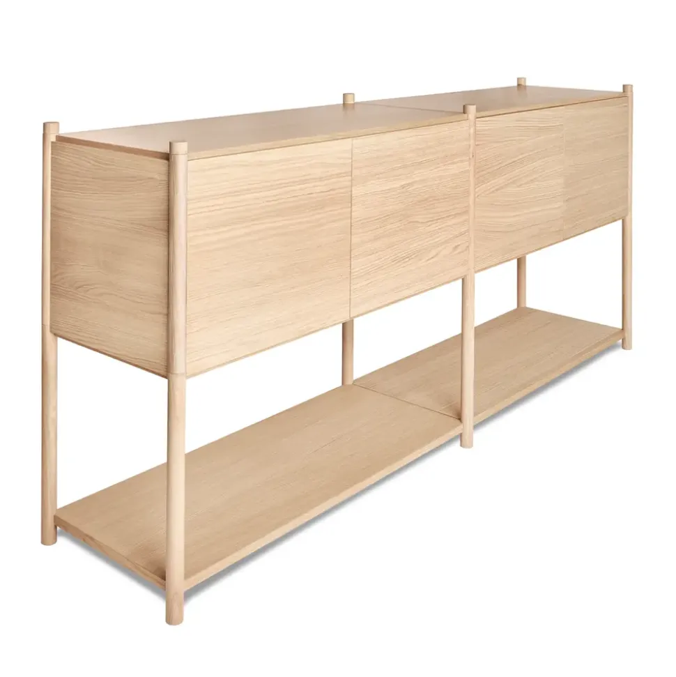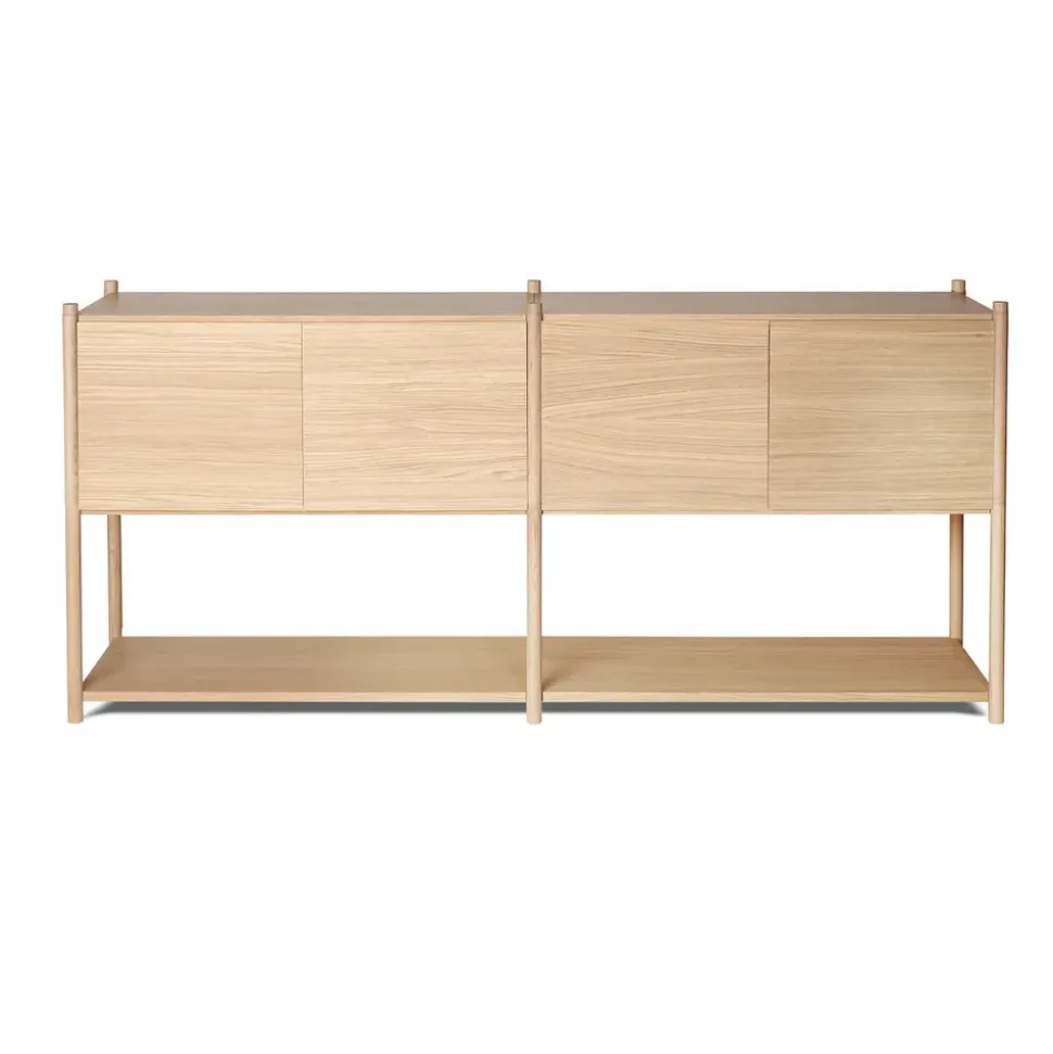 Schönes und andersartiges Bücherregal, entworfen von Michael Rem für . Bei diesen schönen Regalen können Sie „entscheiden“, wie sie aussehen sollen. Sie können das Regalsystem in die Höhe bauen, es zu den Seiten hin erweitern und mit Seitenwänden, Türen oder Rückwänden individuell gestalten. Das Regal ist in drei verschiedenen Varianten, Eiche und Eiche schwarz, erhältlich. Das Bücherregal ist so konzipiert, dass Sie einen Rahmen für all die Geschichten schaffen können, die im Laufe Ihres Lebens entstanden sind. So können Sie das Bücherregal zu Ihrem ganz persönlichen Bücherregal machen und es genau dort aufstellen, wo Sie wollen.