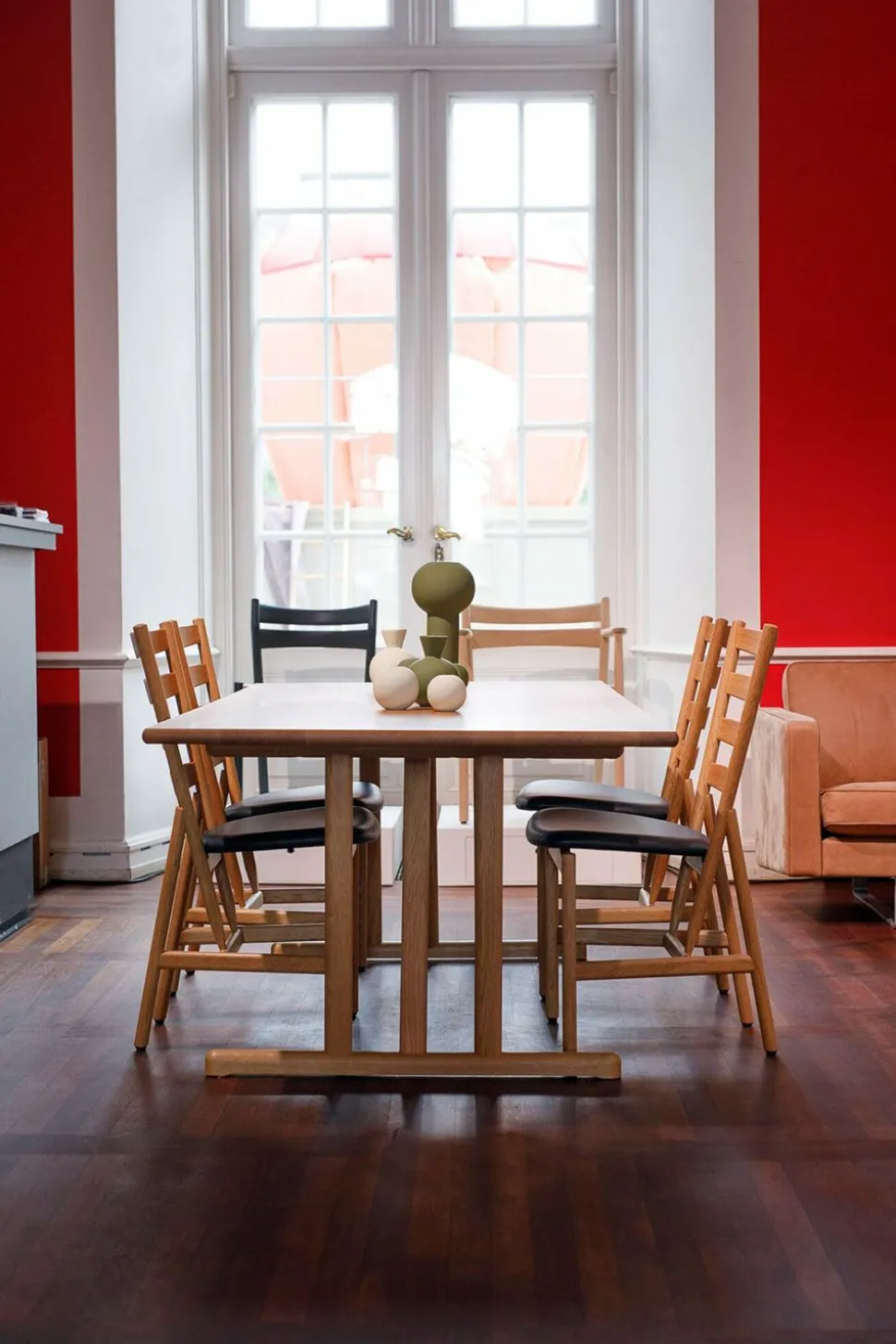 Der SH Shaker Tisch, präsentiert von und meisterhaft entworfen vom renommierten dänischen Künstler Søren Holst, ist der Inbegriff zeitloser Eleganz. Dieser exquisite Esstisch verbindet nahtlos klassisches dänisches Design mit der Essenz der amerikanischen Shaker-Kultur. Søren Holst, ein renommierter dänischer Möbeldesigner, verfügt über einen reichen Erfahrungsschatz in Holzbearbeitung, Konstruktionstechniken und Möbelarchitektur. Sein einzigartiger Stil ist inspiriert von der klassischen Shaker-Designtradition und dem dänischen Möbeldesignerbe, das von Ikonen wie Kaare Klint begründet wurde.
