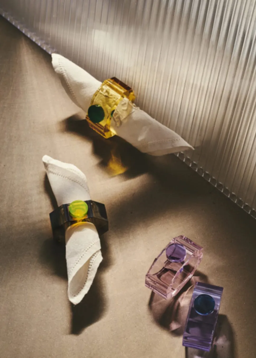 Elegante Serviettenringe aus handgeschliffenem Kristallglas. Die Serviettenringe von sind eine tolle Möglichkeit, den Tisch zu dekorieren und sind das Tüpfelchen auf dem i beim Eindecken des Tisches. Die Ringe sind in verschiedenen Farben gestaltet und jeder verleiht ein elegantes Aussehen. Die einzigartigen Farben schaffen eine ganz besondere Atmosphäre der Ruhe.