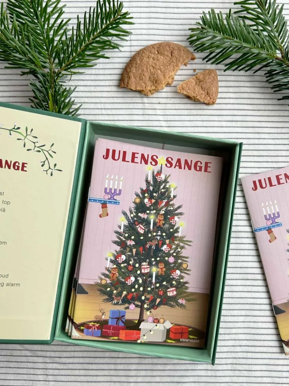 Christmas Songs“ von Vissevasse ist eine wunderschön illustrierte Box mit 15 Liederbüchern, die dazu einladen, sich in nostalgische Weihnachtsstimmung zu versetzen und um den Weihnachtsbaum herum mitzusingen. Jedes Heft ist in einem klaren und eleganten Design mit einer zarten Farbpalette gedruckt, die an traditionelle dänische Weihnachtstraditionen erinnert. Die Lieder wurden sorgfältig ausgewählt und in einer Größe gedruckt, die für Jung und Alt leicht zu lesen ist, so dass die Sammlung eine wunderbare Ergänzung zu den gemütlichen Zusammenkünften des Jahres ist.
