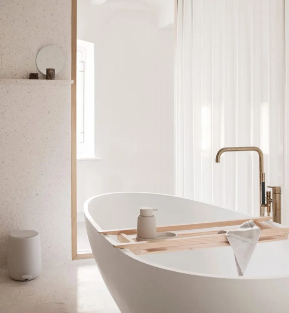 Schöner Abfalleimer von . Der Abfalleimer ist eine großartige Möglichkeit, Farbe ins Bad zu bringen, oder einfach nur eine Möglichkeit, das Praktische in etwas Schönes zu verwandeln. Der Behälter hat ein neutrales Design und passt daher in jede Einrichtung.