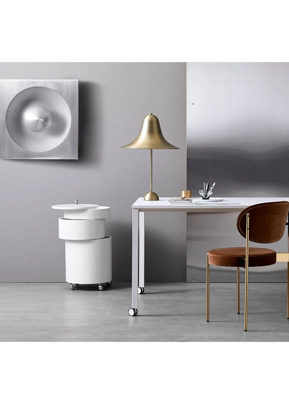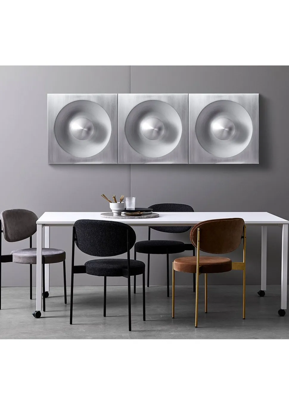Der Spiegel wurde 1969 von entworfen. Es handelt sich um eine dekorative Lampe, die einzeln oder zusammen mit anderen an der Wand oder an der Decke montiert werden kann. Die Lampe ist aus gebürstetem Aluminium gefertigt.