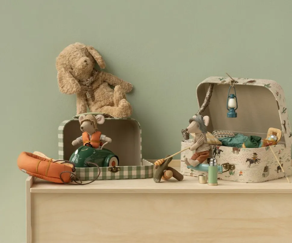 Die Funktion dieser Koffer geht über die Aufbewahrung hinaus; sie sind perfekt, um das Spielen und Lernen im Kinderzimmer zu inspirieren. Arrangieren Sie sie als dekorative Elemente, die dem Raum einen Hauch von Charme und Fantasie verleihen, oder nutzen Sie sie, um Ihrem Kind auf spielerische Weise Ordnung und Verantwortung zu vermitteln. Das Kofferset von lässt sich leicht mit anderen Spielsachen kombinieren, um einen einzigartigen Spielbereich zu schaffen, in dem Ihr Kind entdecken, träumen und seine kreativen Fähigkeiten entwickeln kann. Mit diesen Koffern wird jede Ecke des Kinderzimmers zu einer Einladung zu neuen Abenteuern.